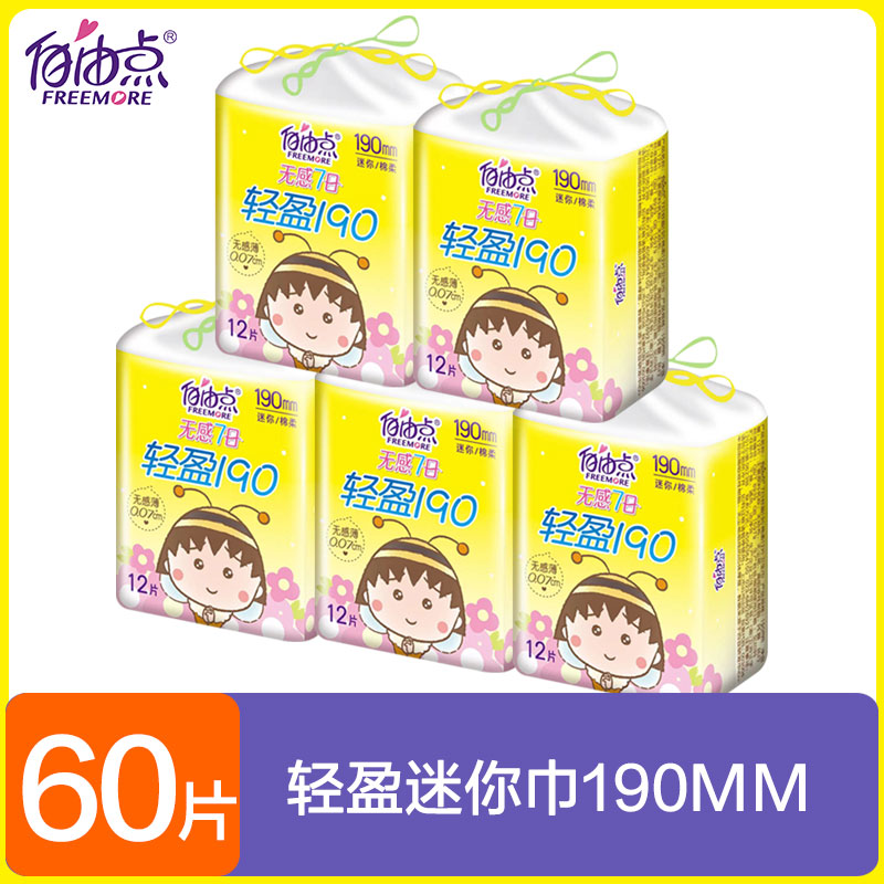 自由点迷你卫生巾190mm日用旗舰带护翼护垫超薄店女纯棉官网正品