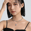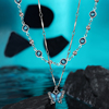 双层海蓝色蝴蝶吊坠项链女甜酷叠戴锁骨链轻奢小众设计高级感配饰