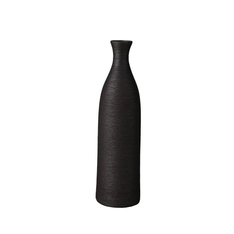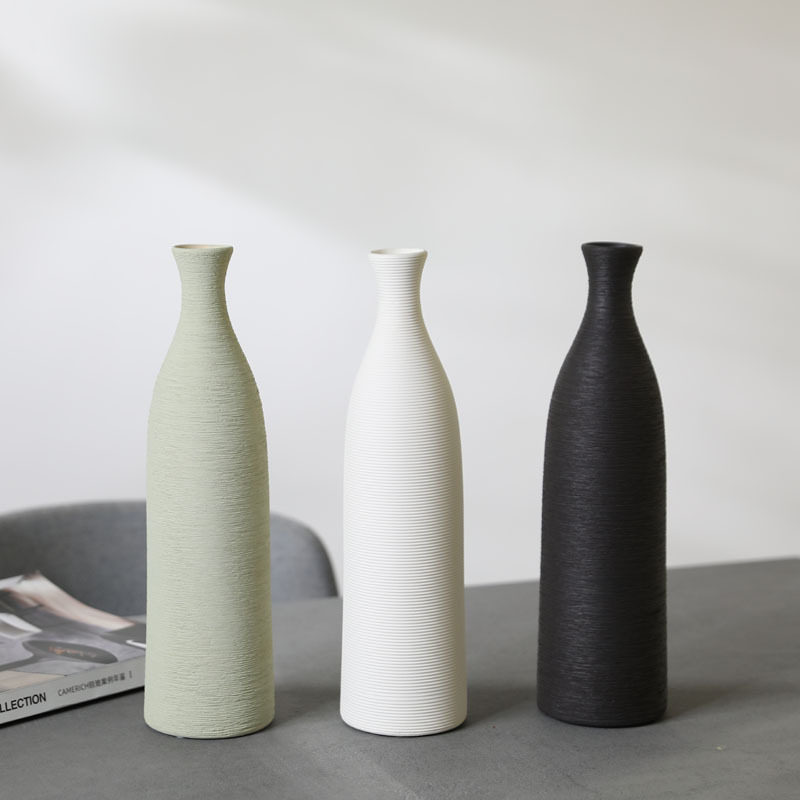 现代简约黑白色拉丝陶瓷花瓶 侘寂风客厅桌面插花器软装饰品摆件