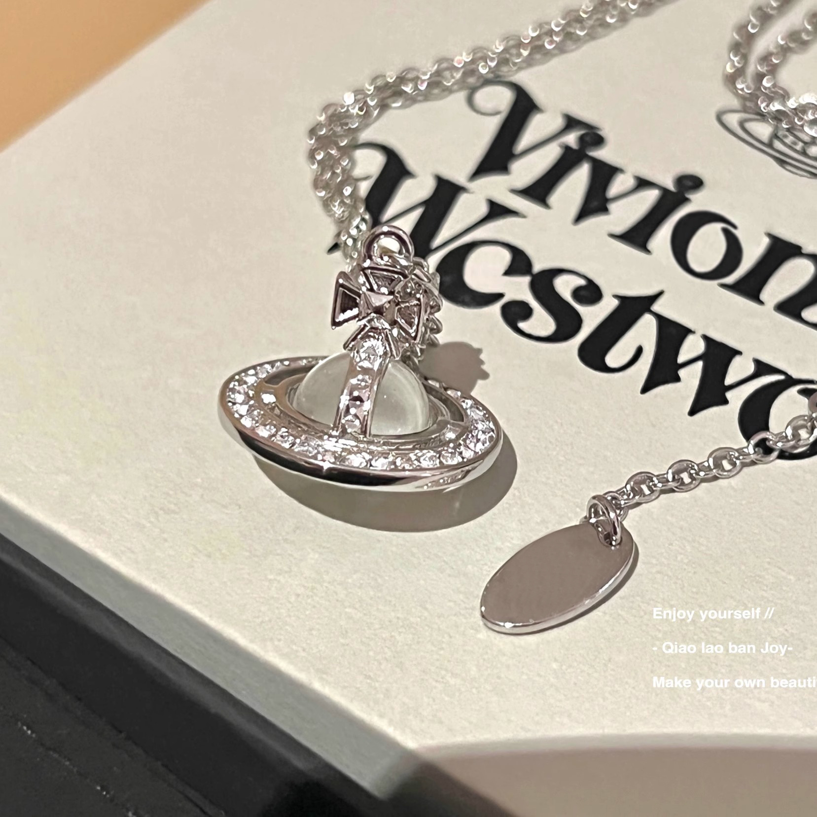 钛钢不掉色微微安超闪土星渐变满钻立体orb中号项链轻奢