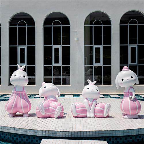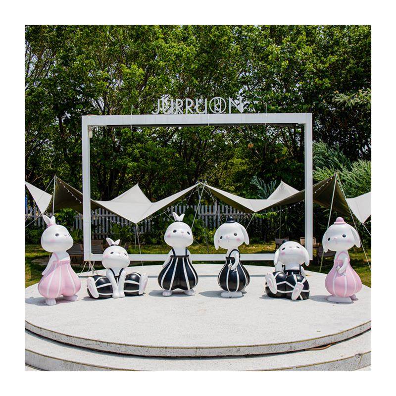 大型玻璃钢几何兔子雕塑动物灯笼兔摆件公园草坪商场售楼部装饰品
