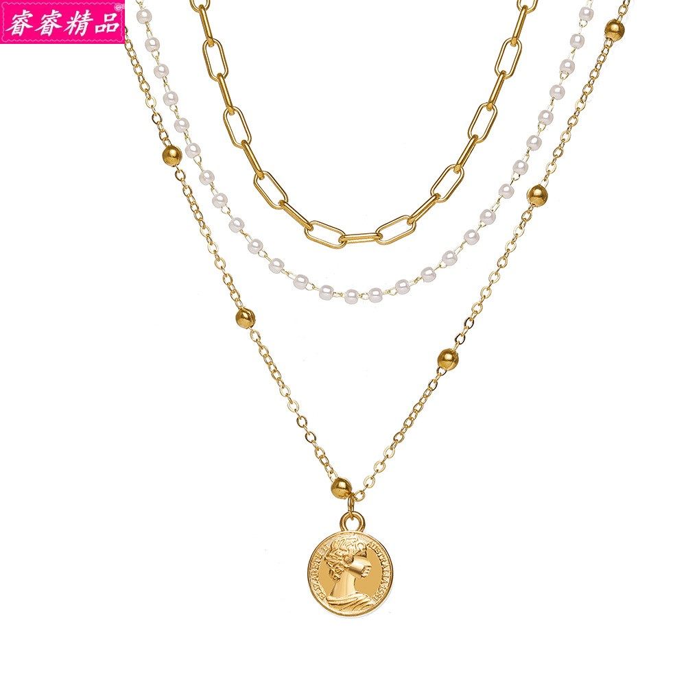 retro alloy pearl choker Gold multi-layered pearl necklace新