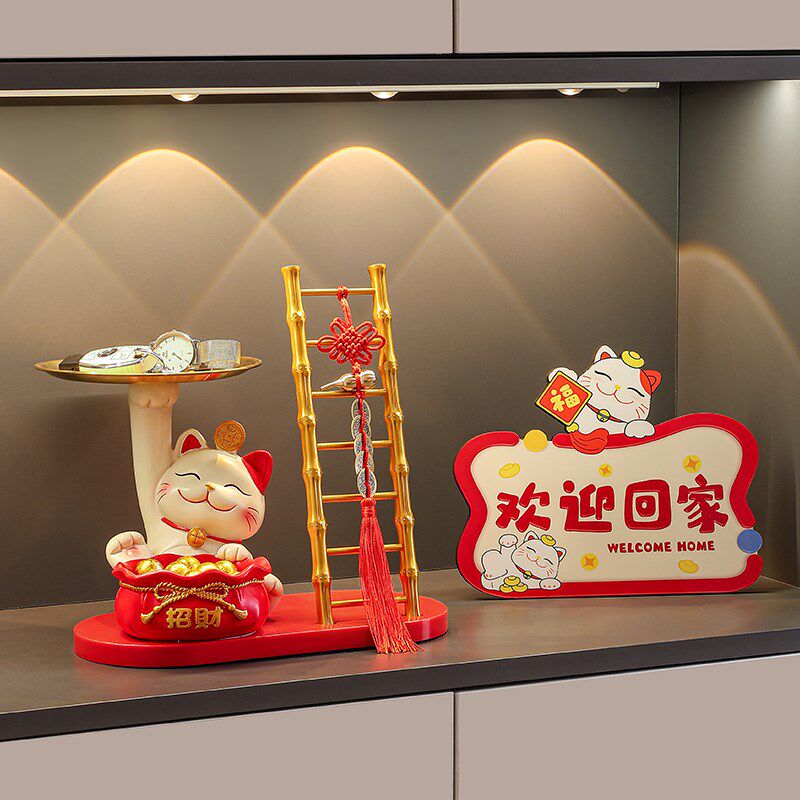 招财猫入户玄关钥匙收纳摆件门口鞋柜置物架客厅欢迎回家装饰品