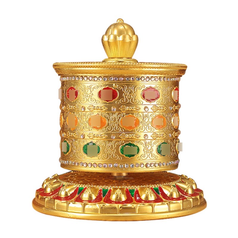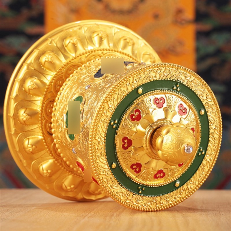 藏式指捻转轮手指尖式捻转筒客厅家用浮雕合金手动转桶办公室摆件