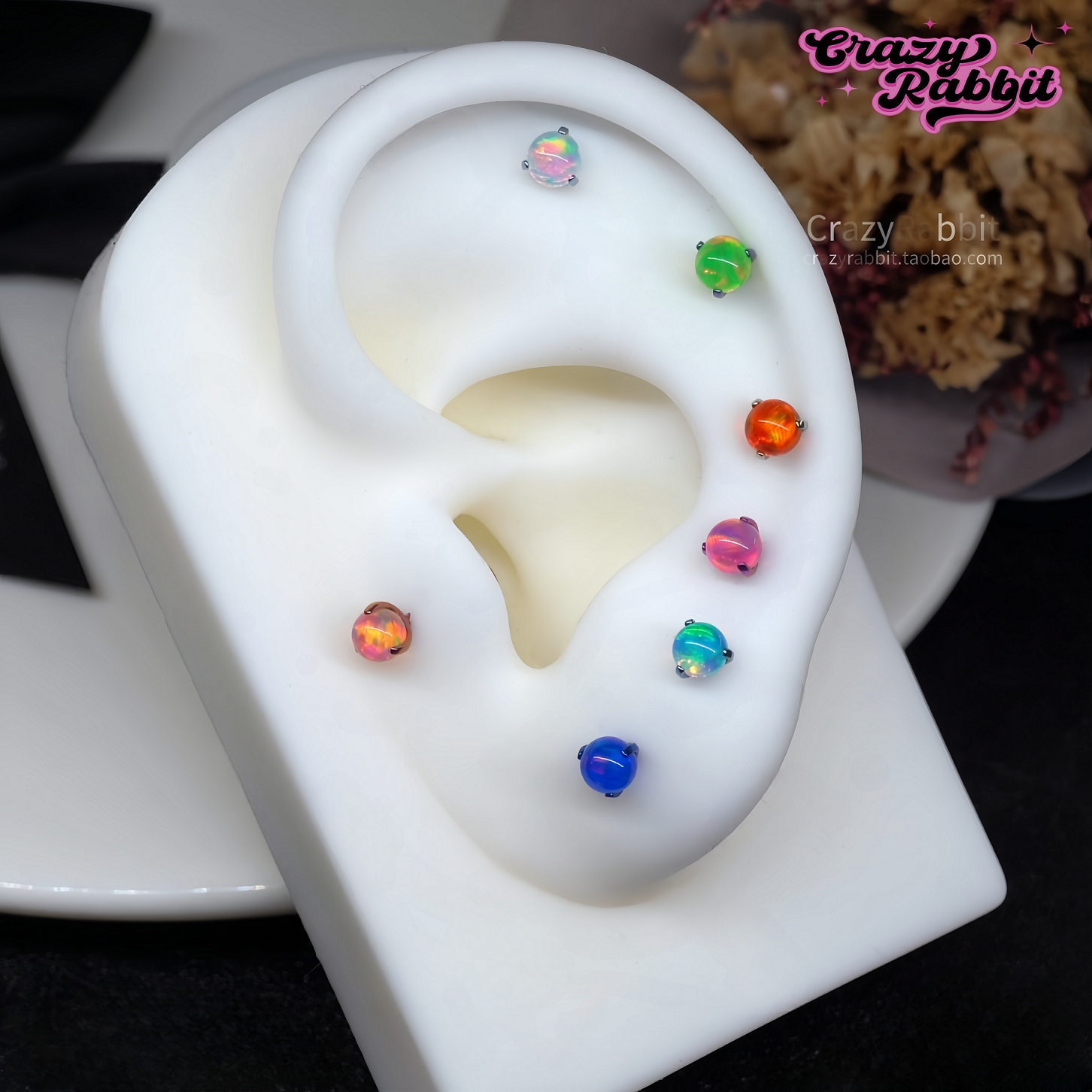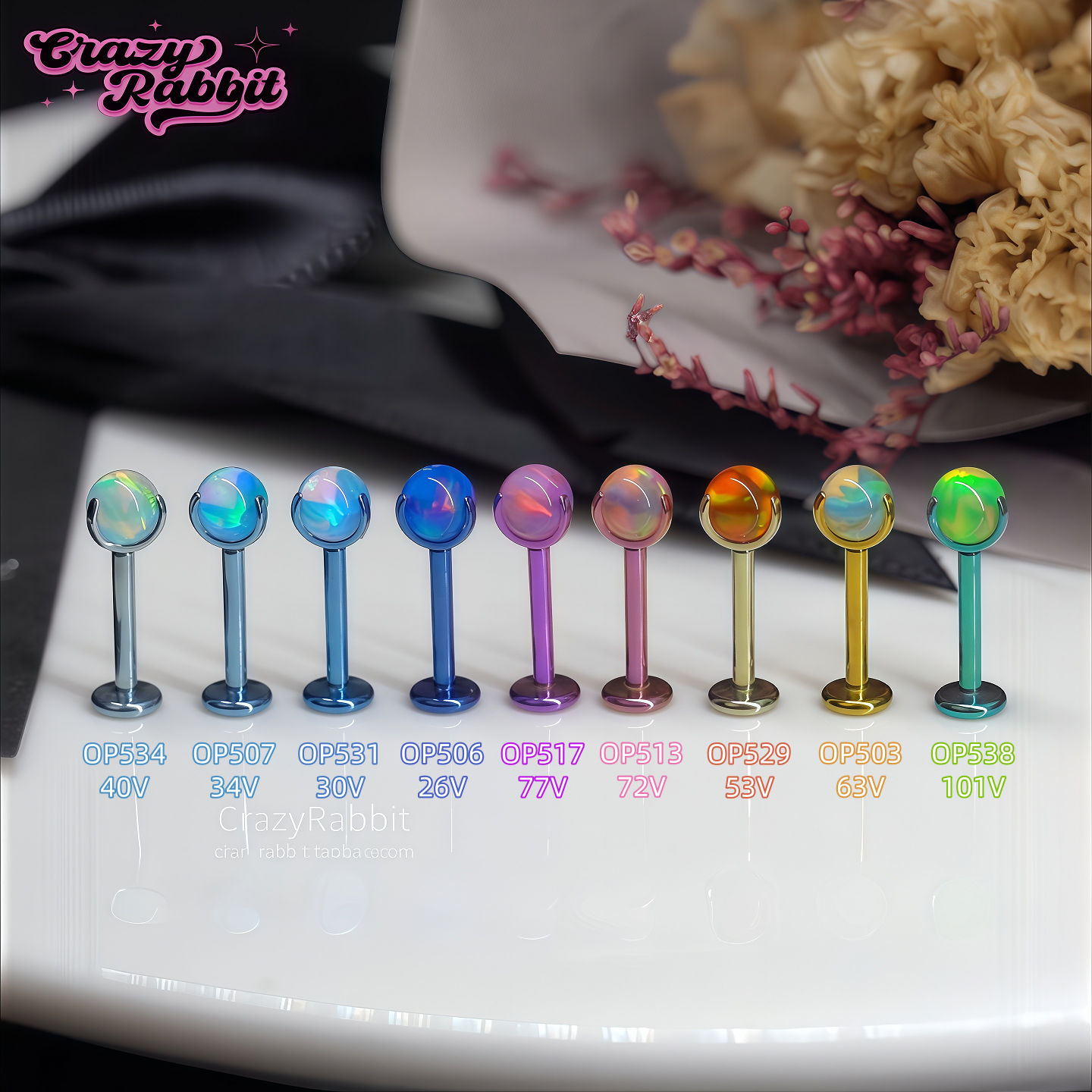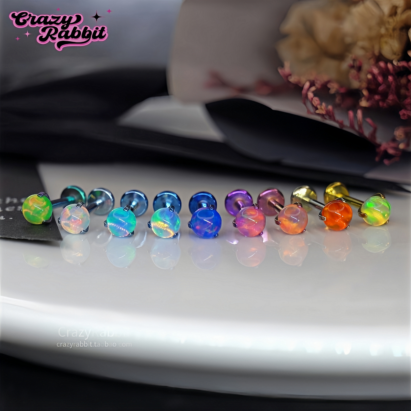 CrazyRabbit 爆闪果冻澳宝唇钉F136医用钛合金耳钉欧泊舌钉眉钉