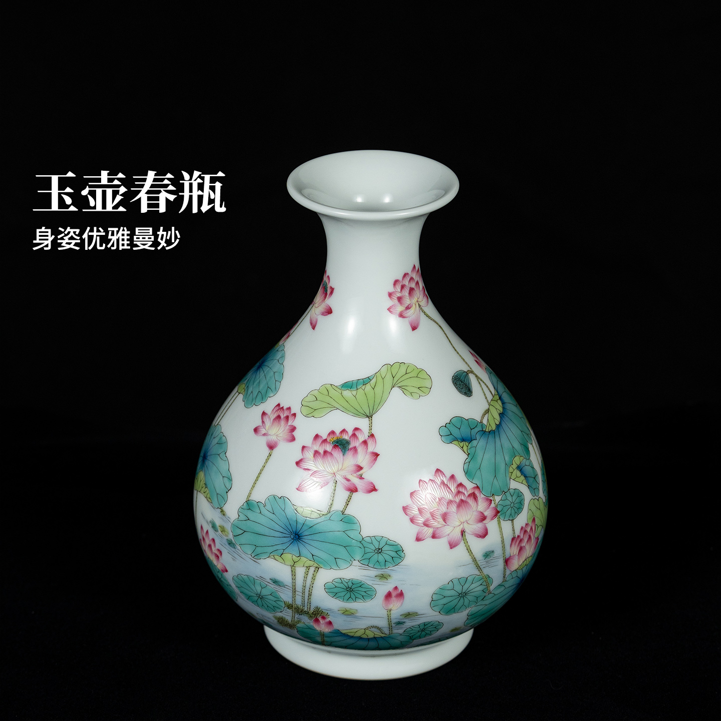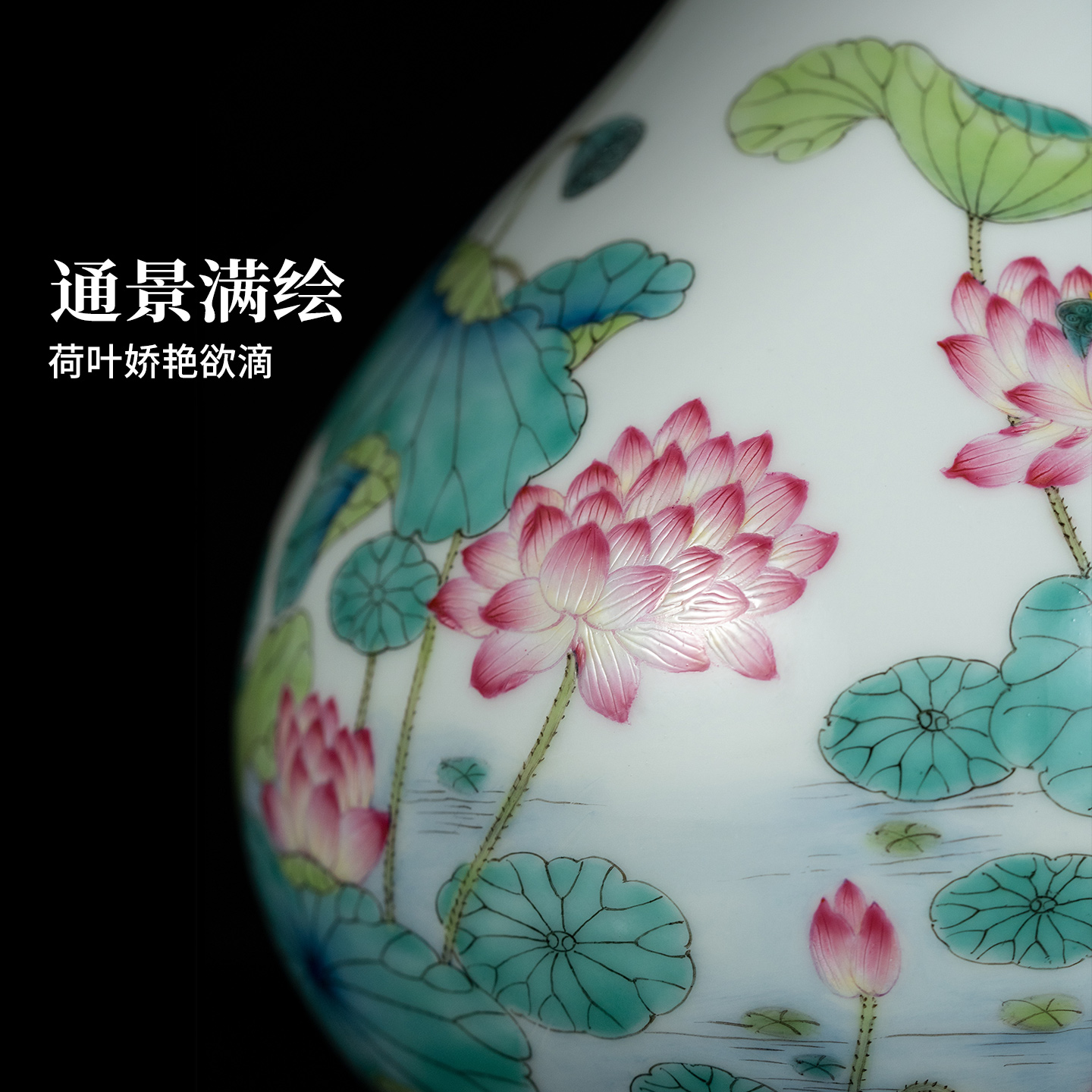 景德镇官方陶瓷手工粉彩荷叶纹花瓶中式客厅玄关开业仿古装饰摆件