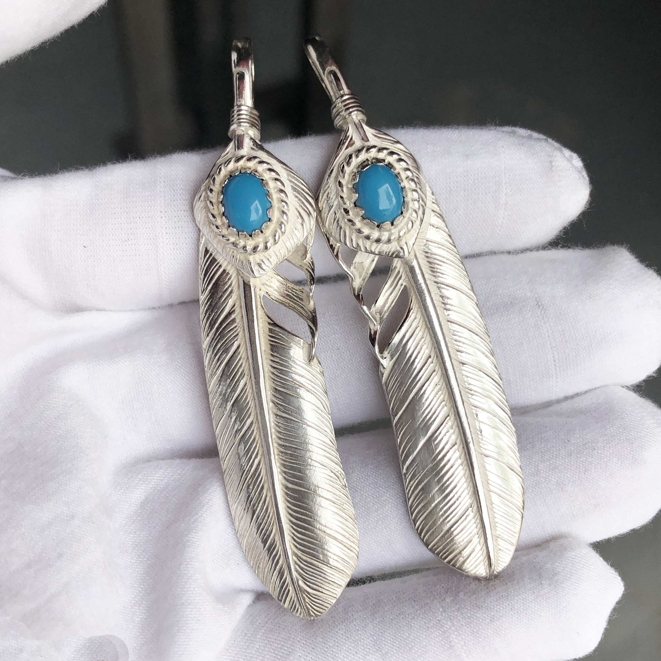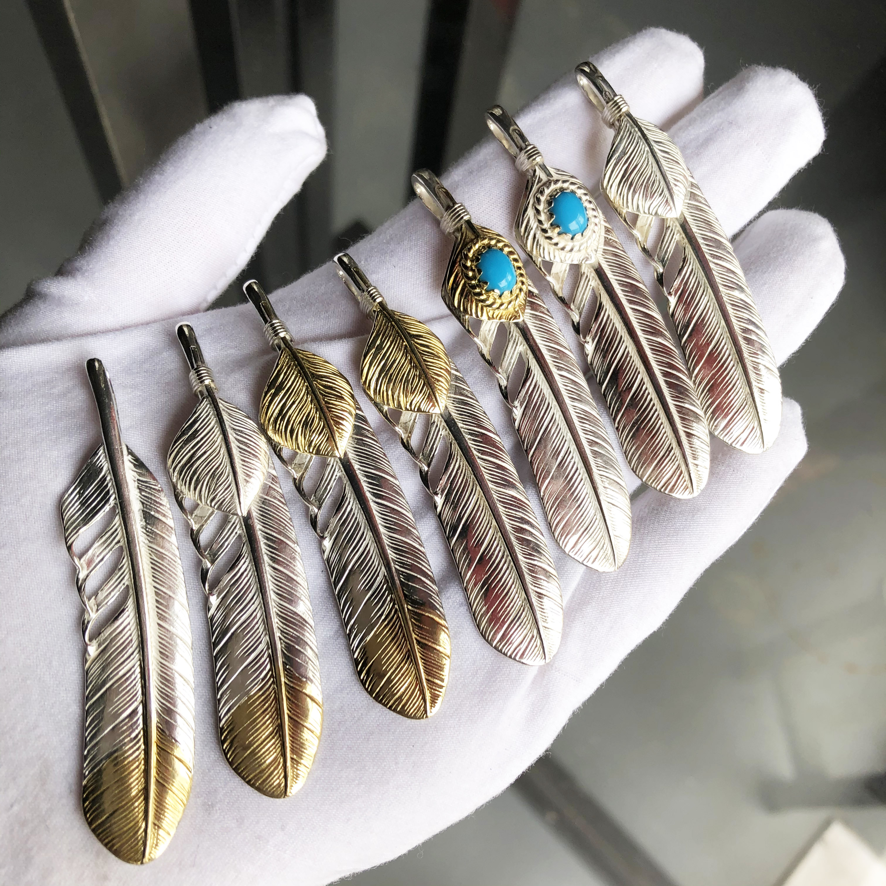 菊地风格松石羽毛项链男潮高桥吾郎叶子吊坠女款S925纯银手工