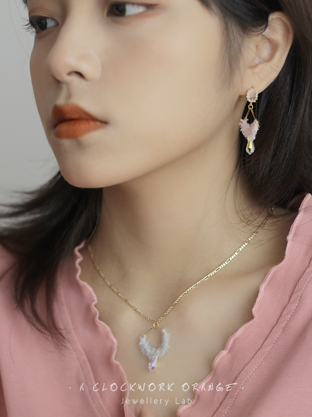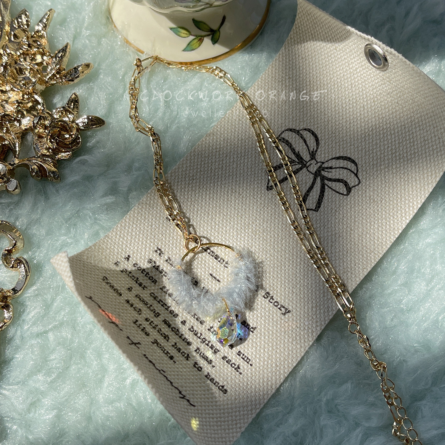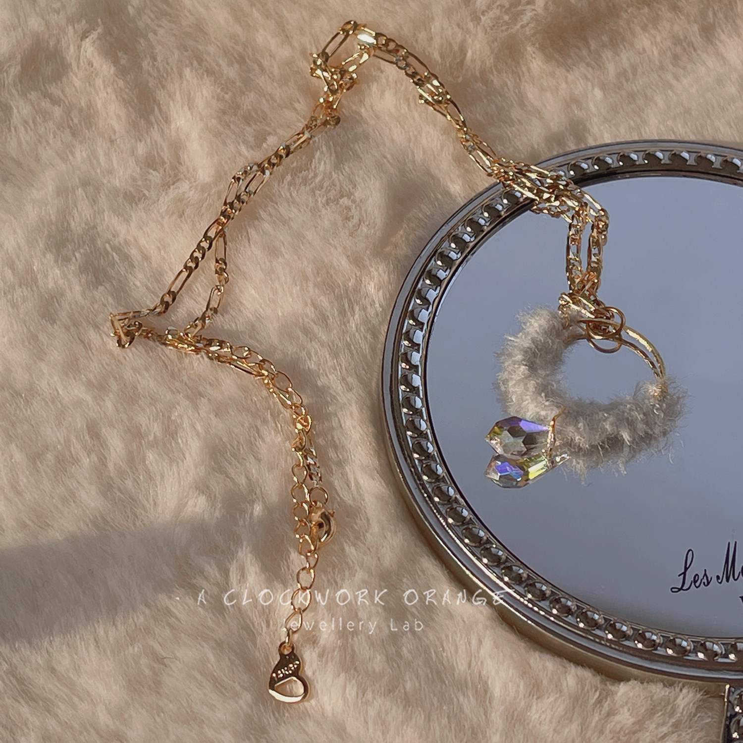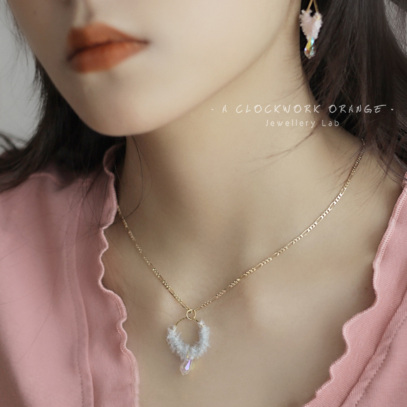 发条橘子 原创蓝色毛绒海洋幻彩水滴水晶14k包金精致项链锁骨链