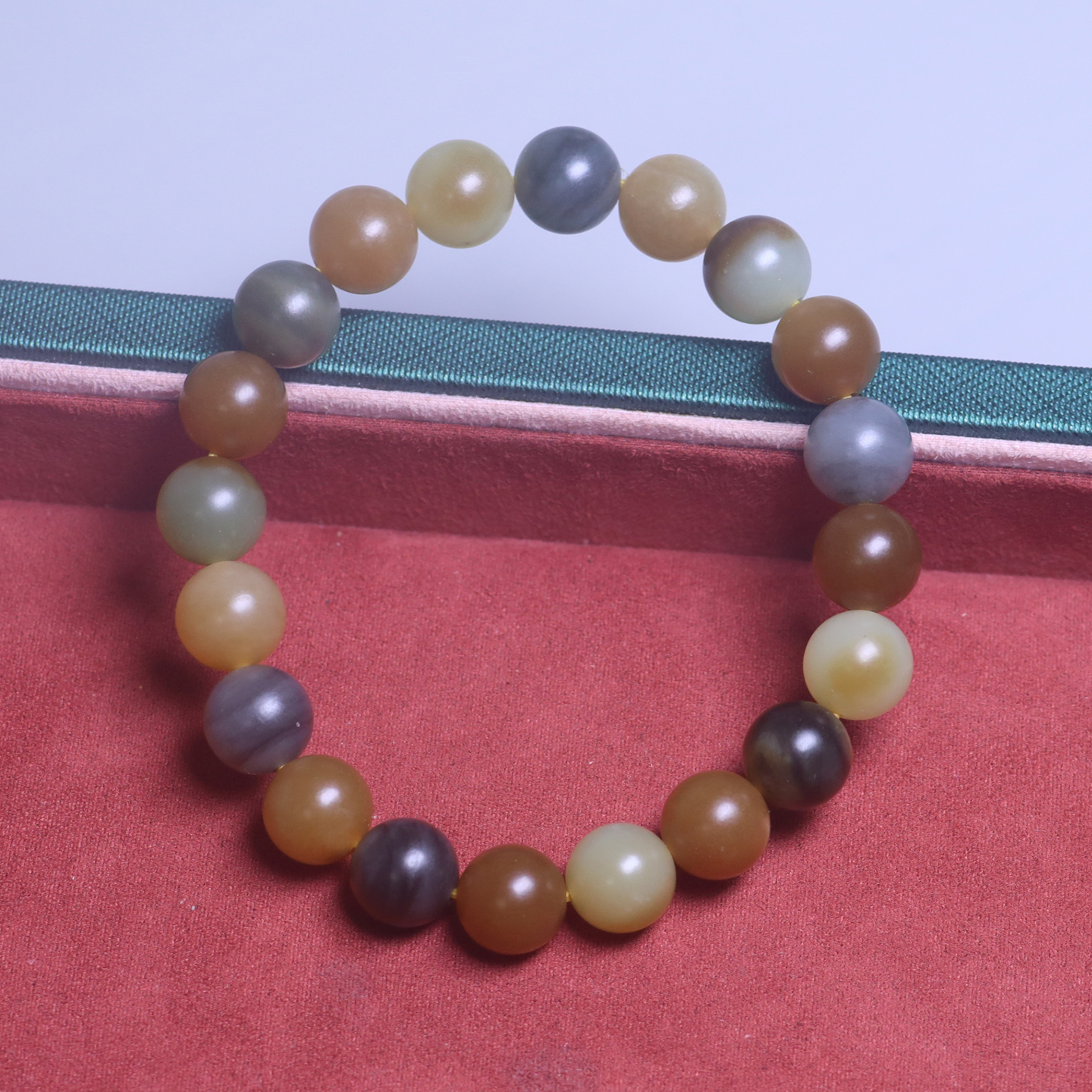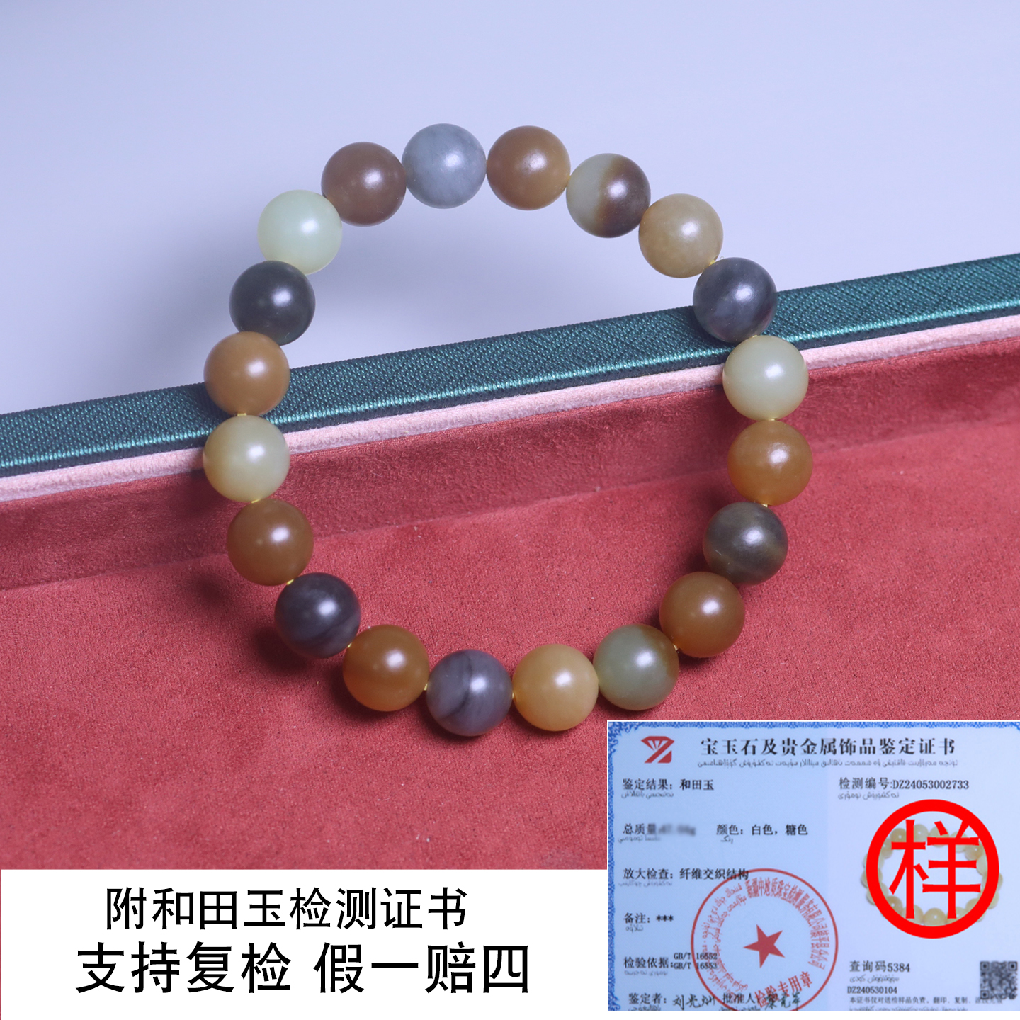 珪宝和田玉楼兰三色手串直径10mm女款天然玉石玉手链带证书送女生