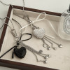 银色满钻爱心蝴蝶结流苏项链女轻奢小众设计高级感锁骨链毛衣链
