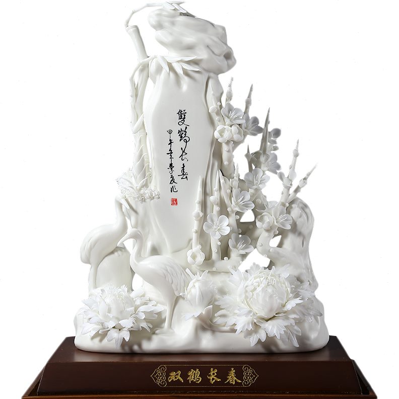 双美微春家居饰品现代陶瓷装饰品德花摆件摆设品白瓷化长鹤时尚
