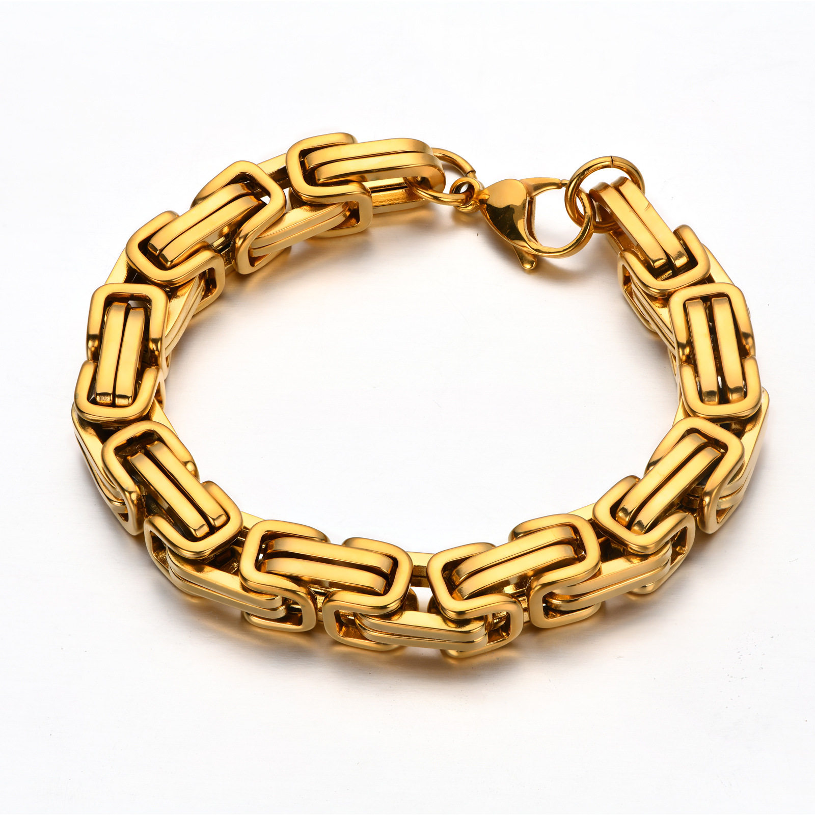 欧美古巴链复古钛钢嘻哈个性冷淡风男士霸气黑色回字粗手链不变色