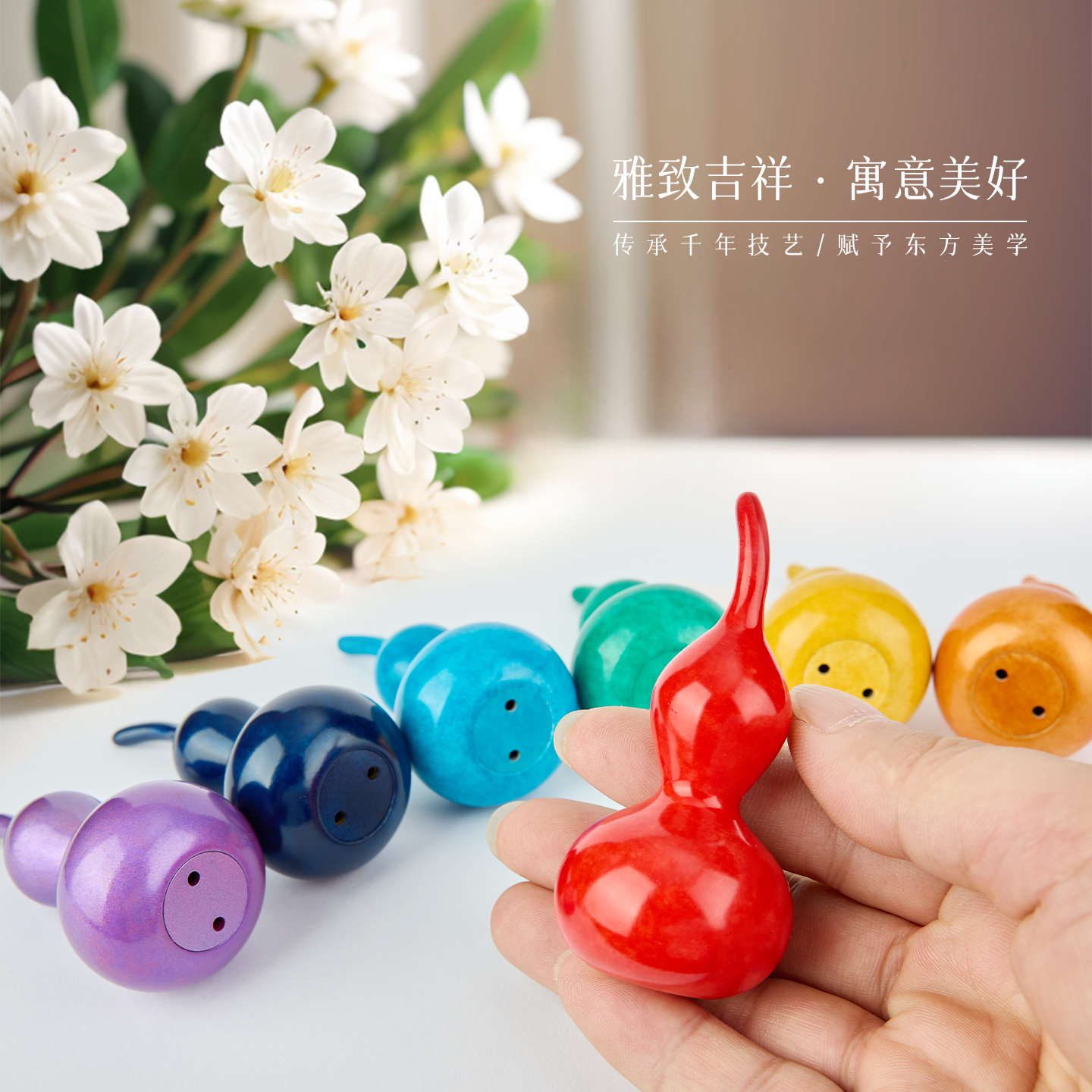 善吉来七彩葫芦中式铜葫芦摆件入户门玄关客厅装饰乔迁开业礼品