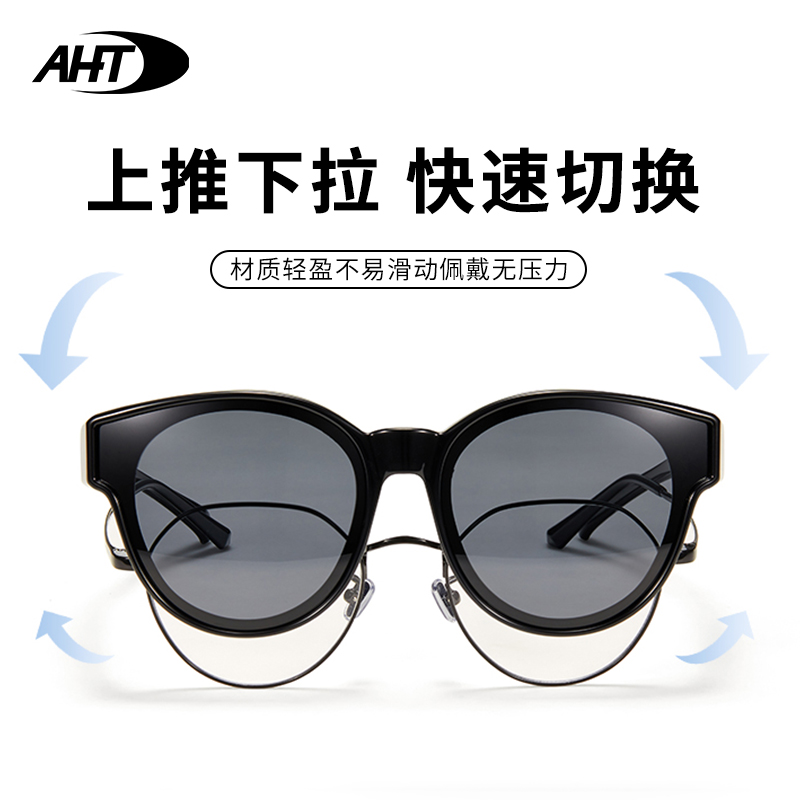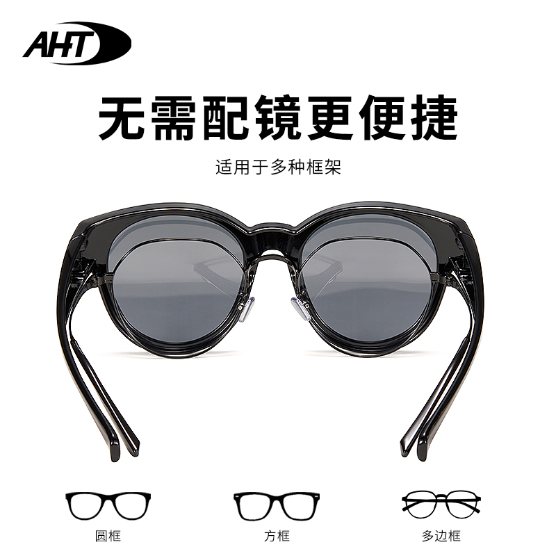AHT近视太阳镜偏光近视墨镜男女复古防强光开车专用圆框眼镜套镜