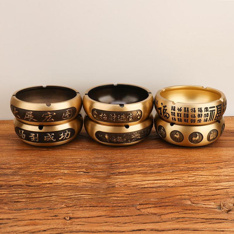 黄铜百福烟灰缸十二生肖烟灰缸马到成功大展宏图家用烟灰缸摆件定