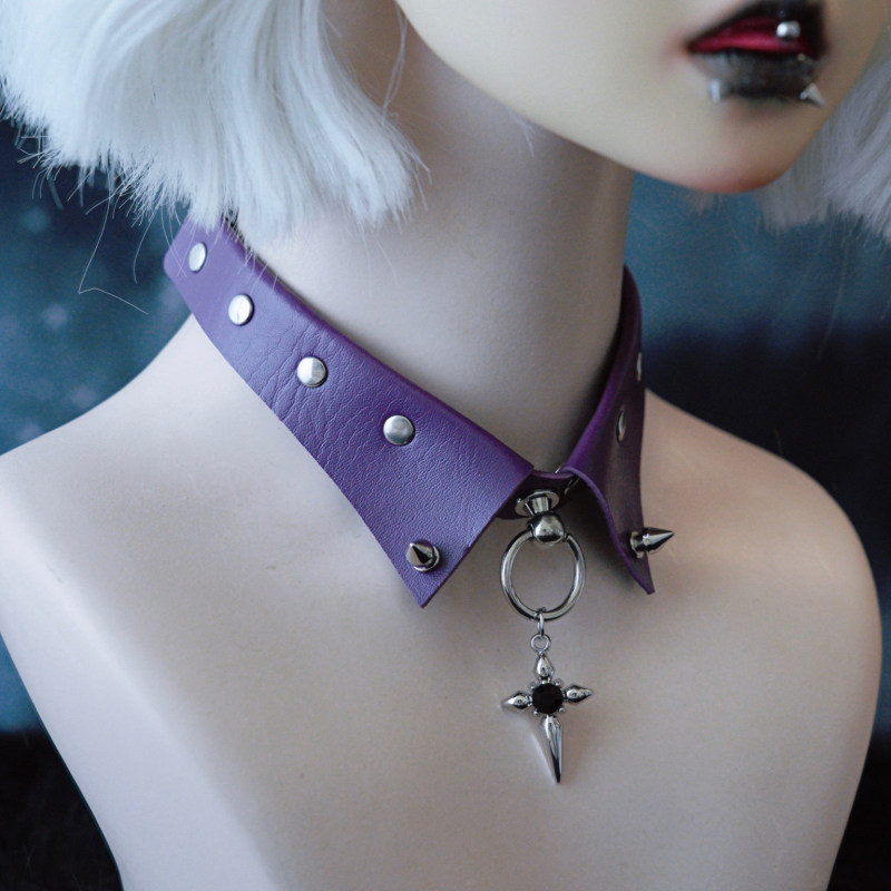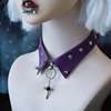 怪糖饰物集原创手工黑色十字假领式仿皮颈链choker暗黑亚文化紫色