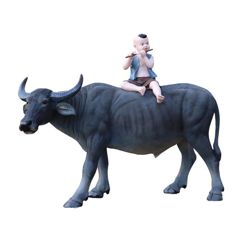 仿真奶牛雕塑牧童骑水牛大型摆件农耕文化模型玻璃钢园林景观动物
