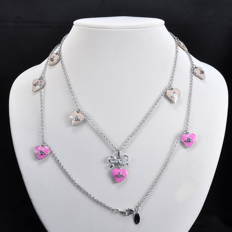 【官网正品】西太后十三粉红爱心土星项链薇薇安长款颈链女明星款