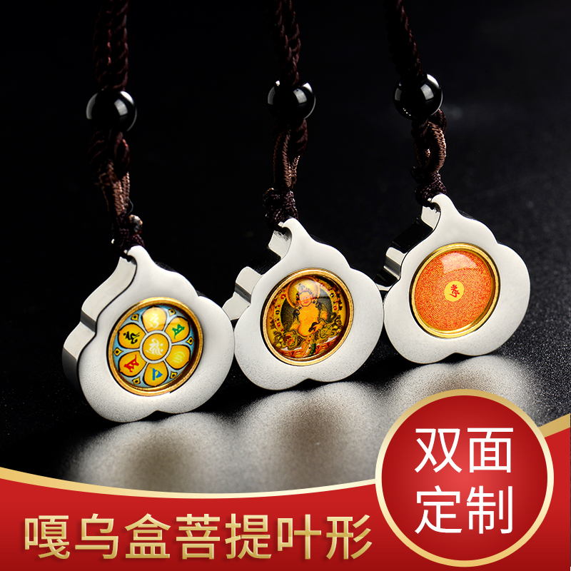 定制图案楞严经绿度母药师佛菩提叶嘎乌盒空心吊坠挂件女项链