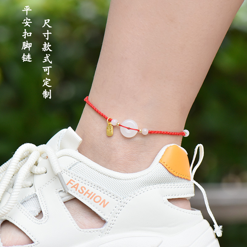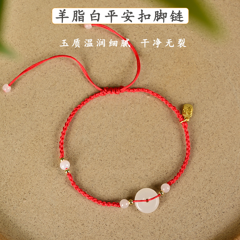 昆玉谣新疆和田玉羊脂白玉本命年红绳平安扣手链脚链男女儿童款
