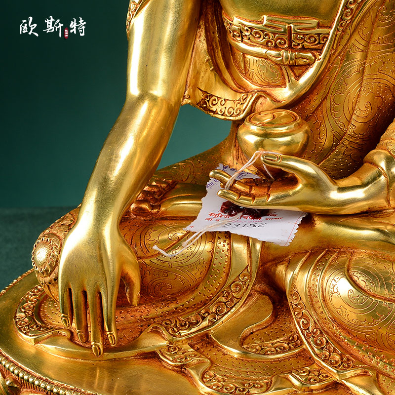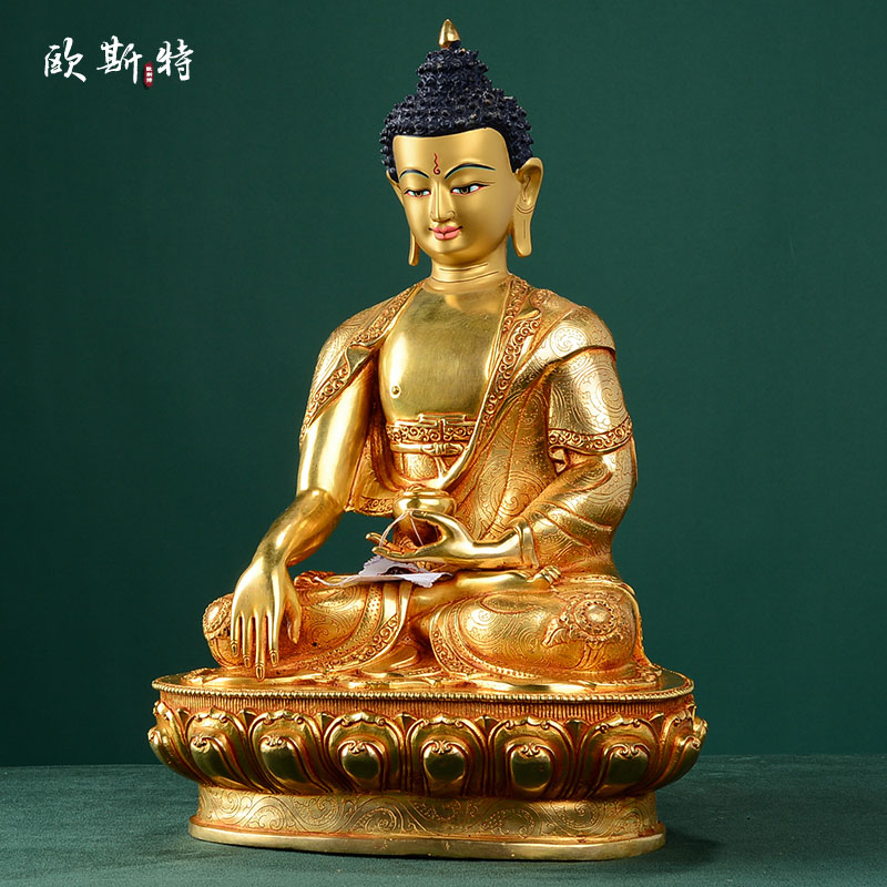 欧斯特 释迦牟尼佛铜像摆件 乔迁新居居家客厅尼泊尔铜鎏金三宝佛