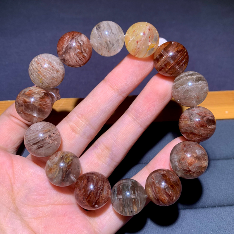 天然顺发兔毛幽灵单圈手链一物一图彩发晶幽灵水晶手串饰品礼物女