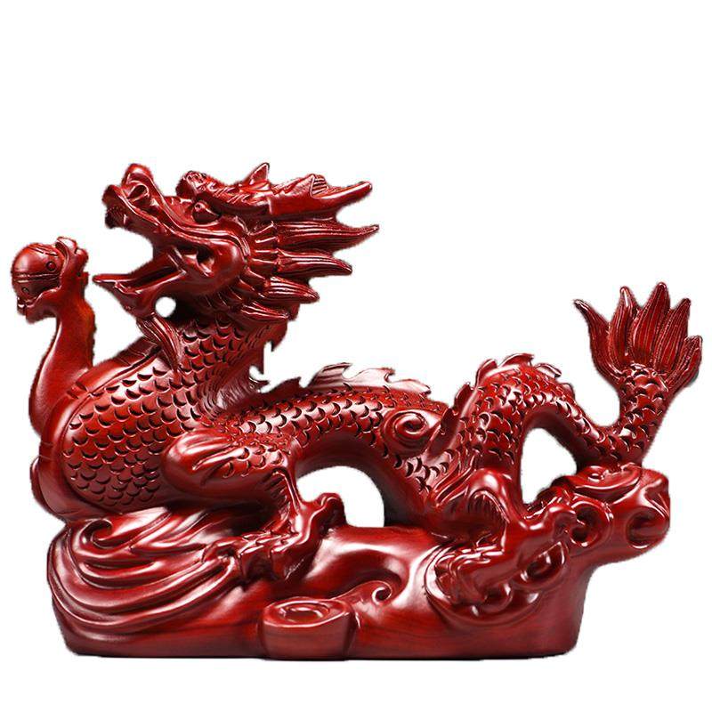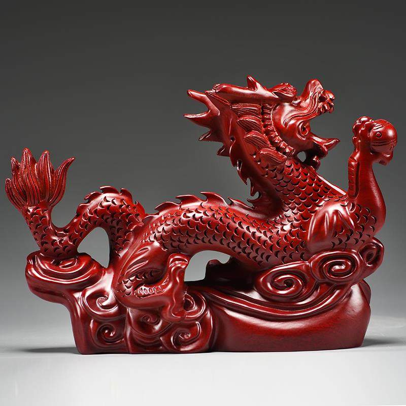 红色木头龙摆件补角实木质雕刻十二生肖木制龙形吉祥物装饰工艺品