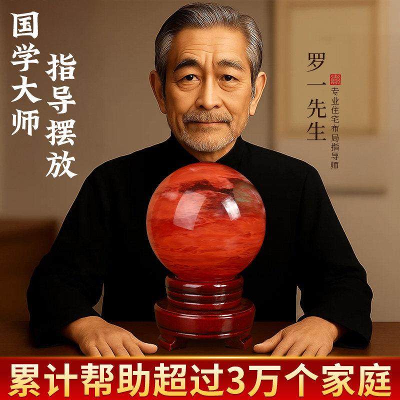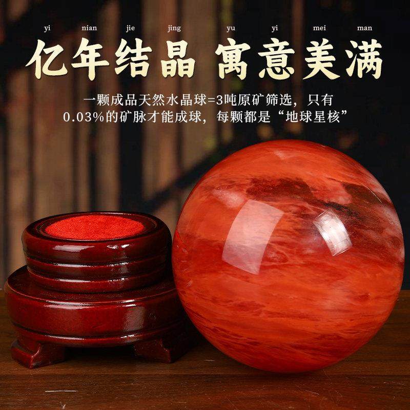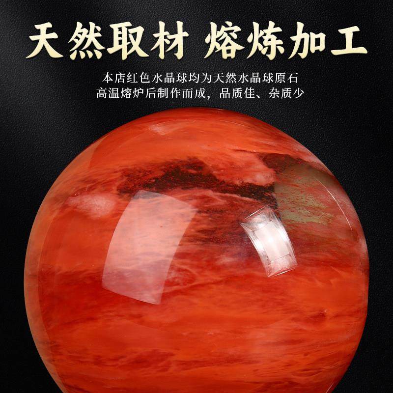 天然鸿运当头水晶球摆件原石红色风生水起办公室客厅开业玻璃球