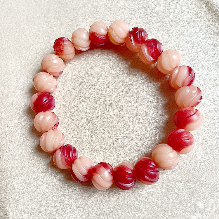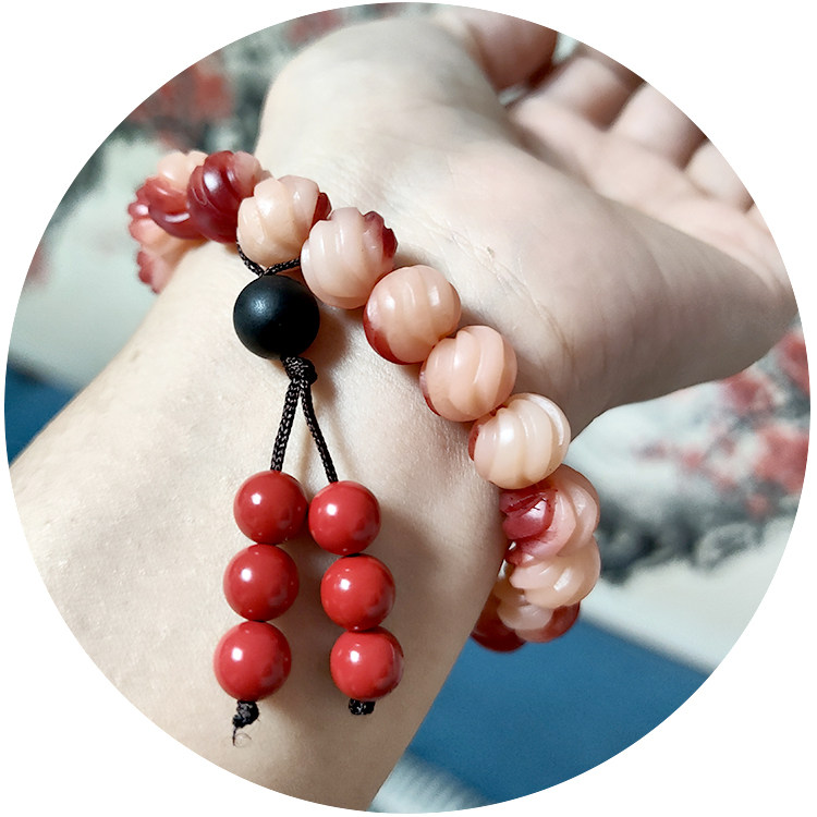 红色牛骨手串雕刻螺纹手链女士12mm真品骨头文玩佛珠饰品念珠