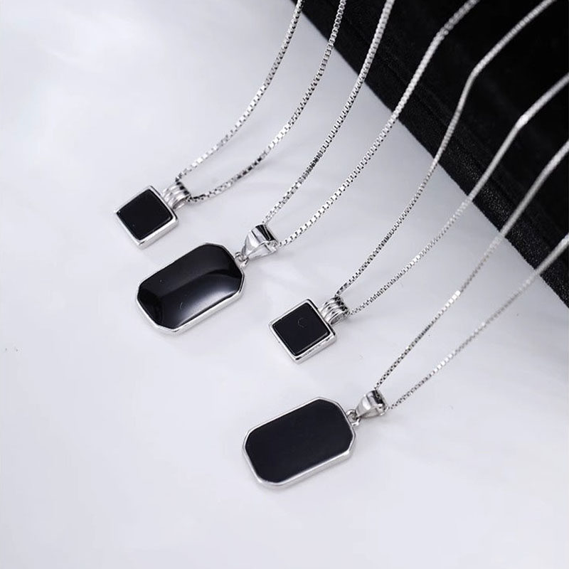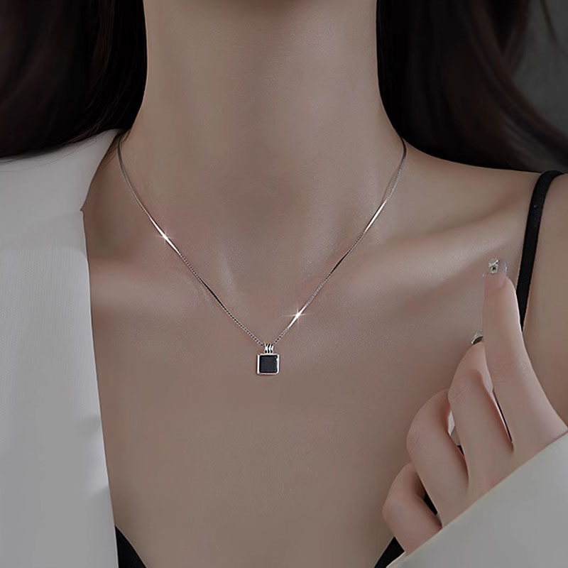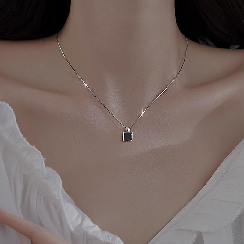 黑色方牌项链女配饰2025新款爆款颈链高级感轻奢小众锁骨链毛衣链