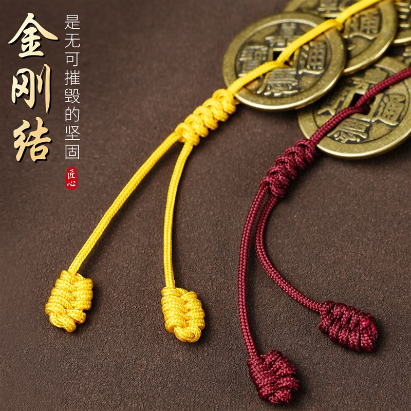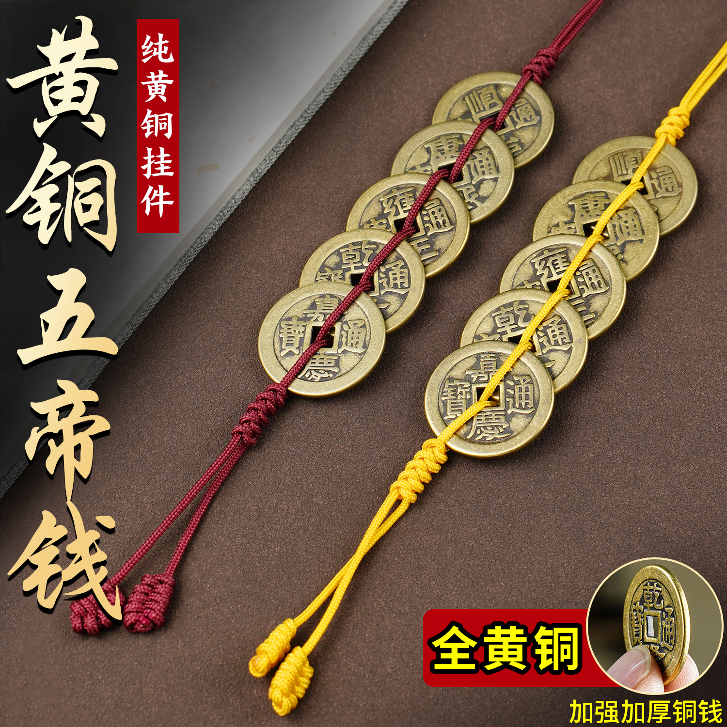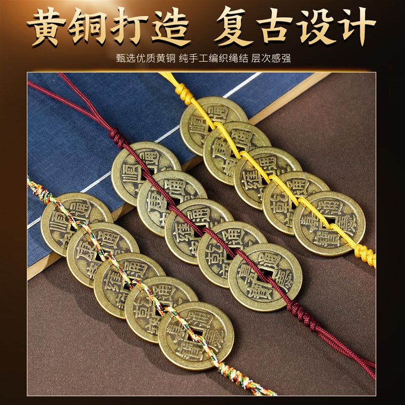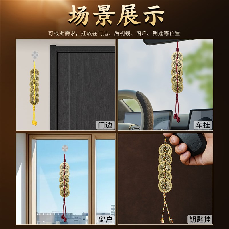 纯黄铜五帝钱门对门挂件红黄绳压门槛铜钱家居吊饰六帝钱客厅摆件