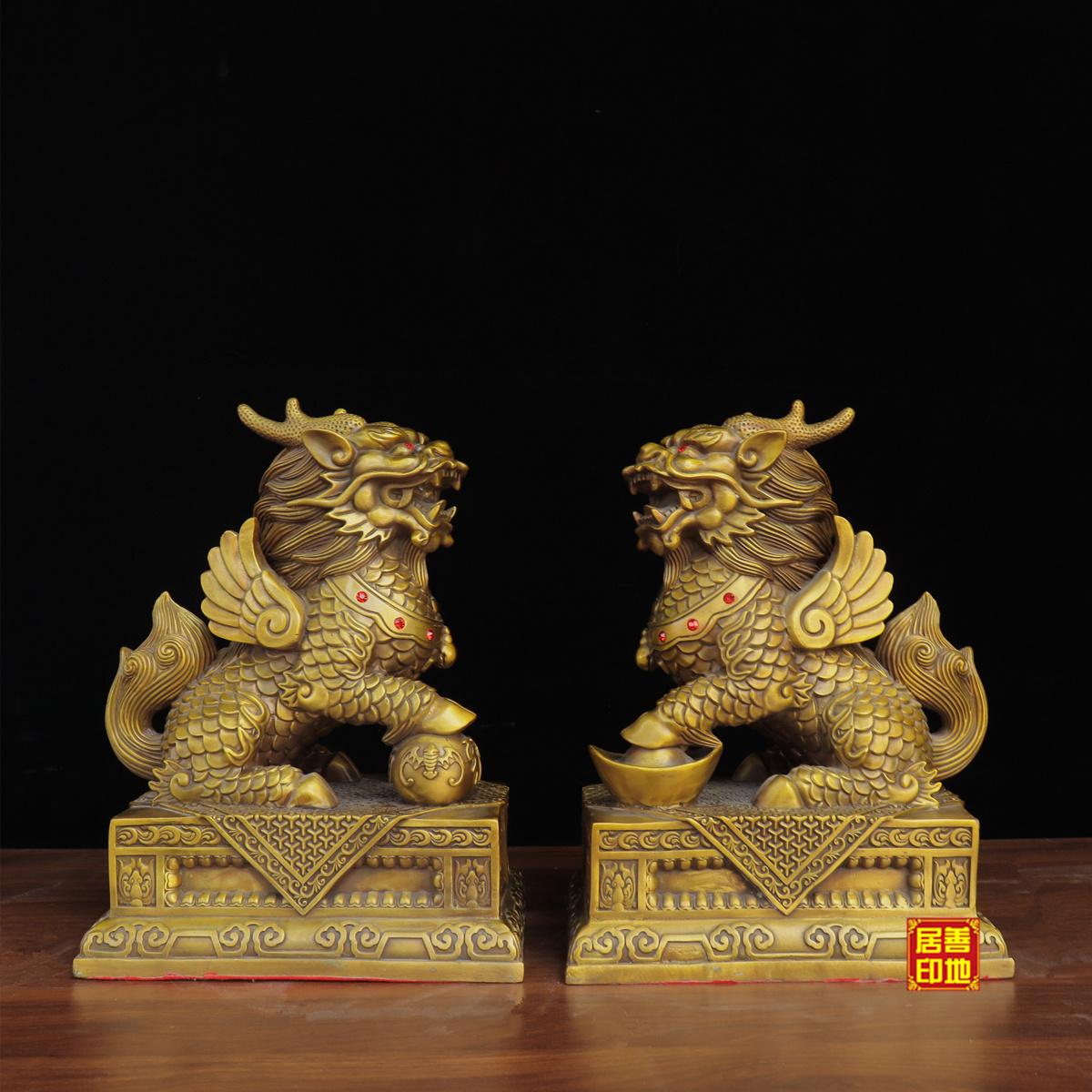 纯黄铜聚财纳福麒麟摆件一对客厅办公室玄关酒柜招财桌面装饰礼品