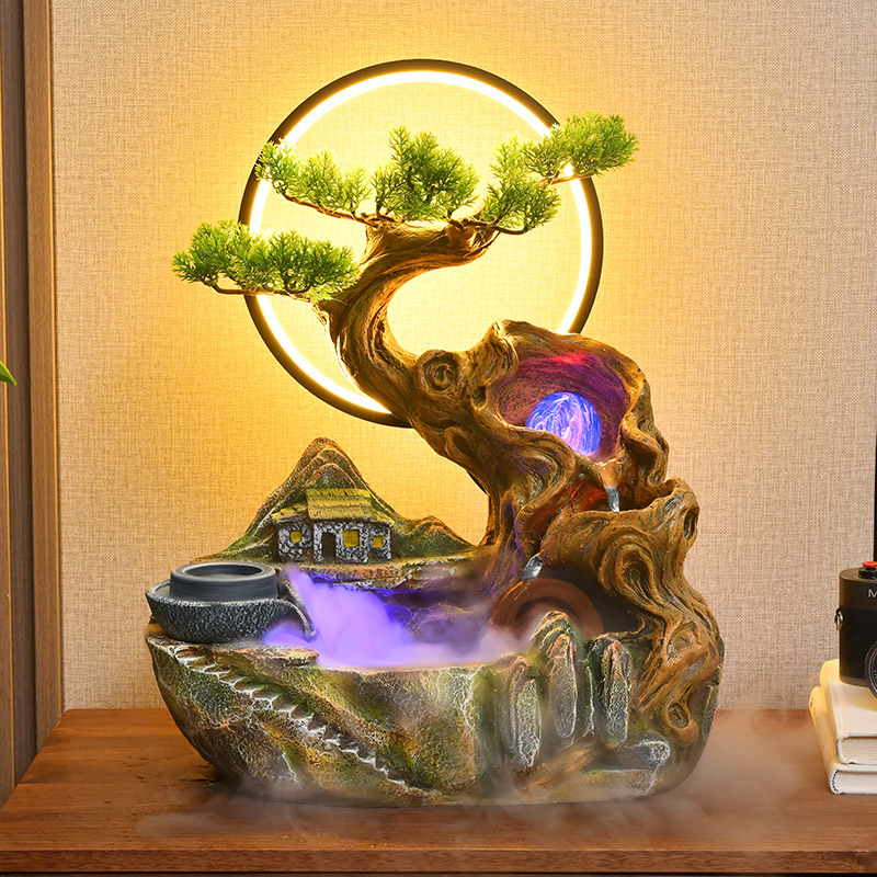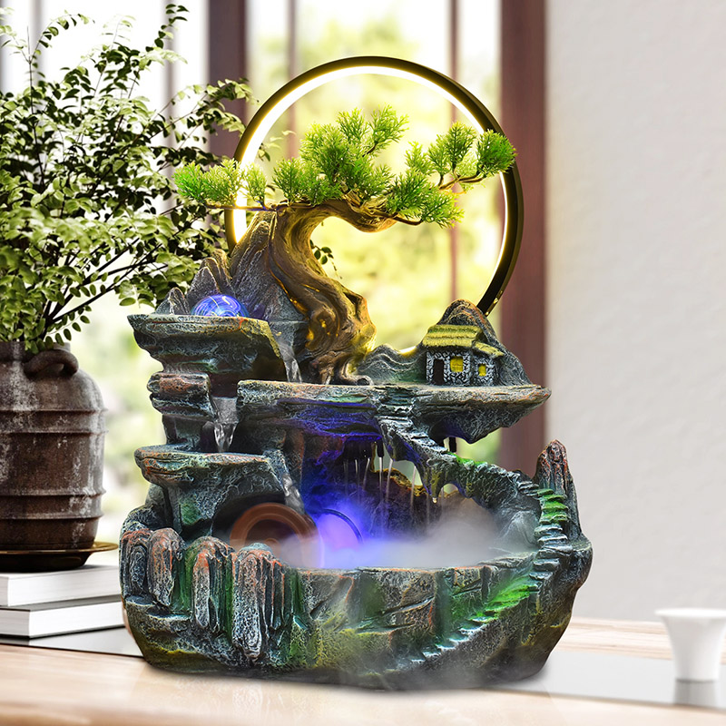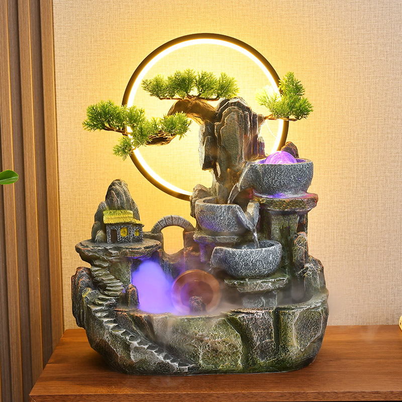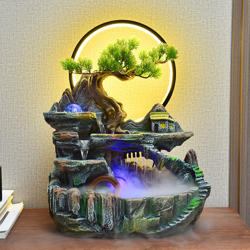 桌面小假山流水喷泉生招财风水轮开业循环水景观礼物客厅高山摆件