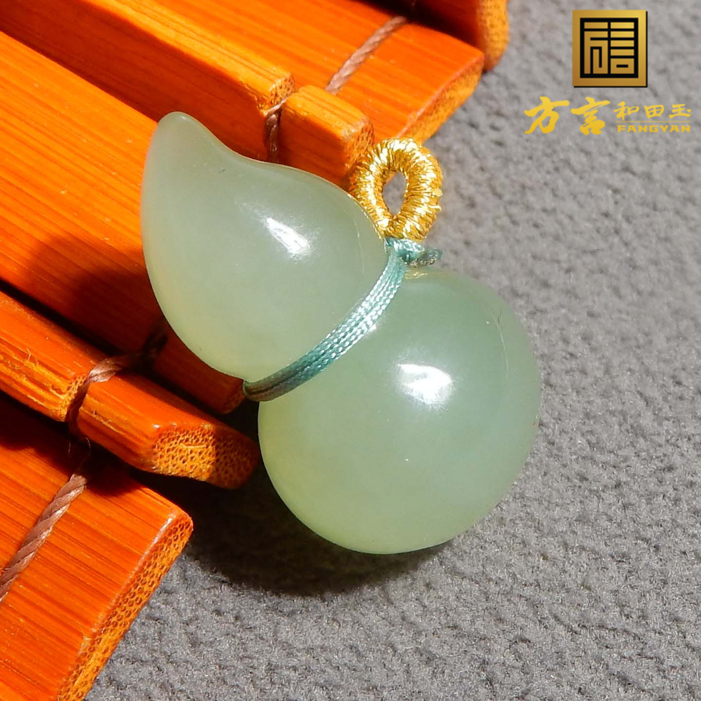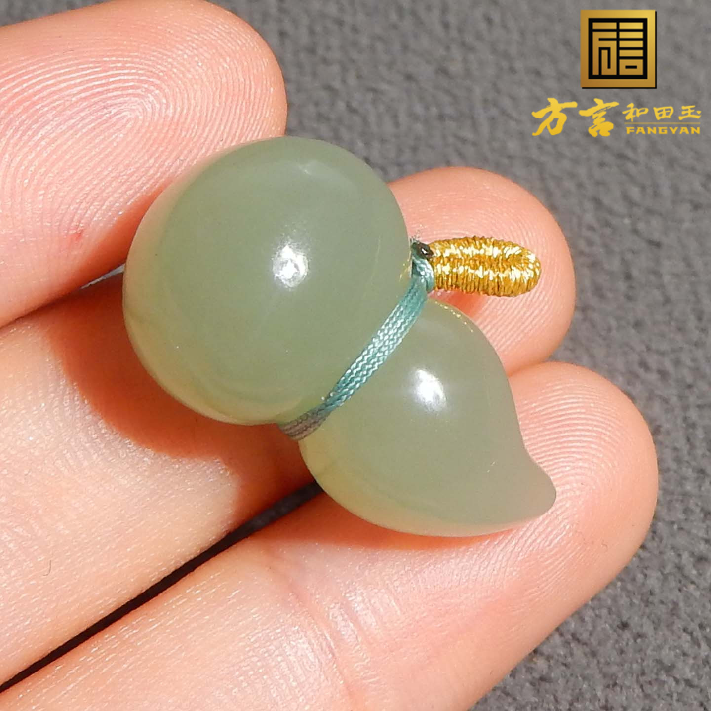 方言和田玉精品青海老坑山料冰底湖水绿白玉福禄葫芦吊坠子挂件s7