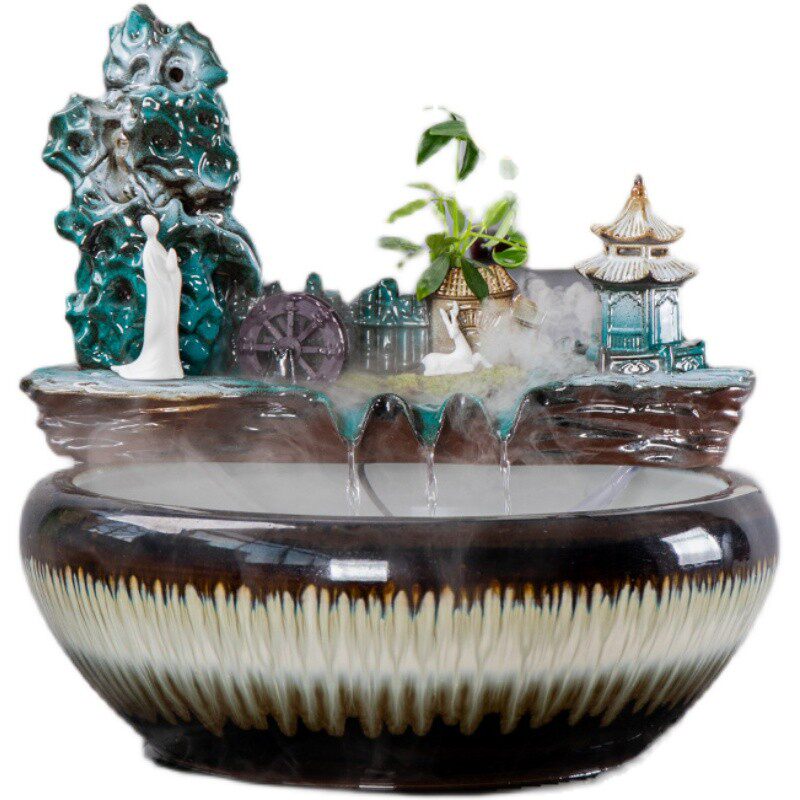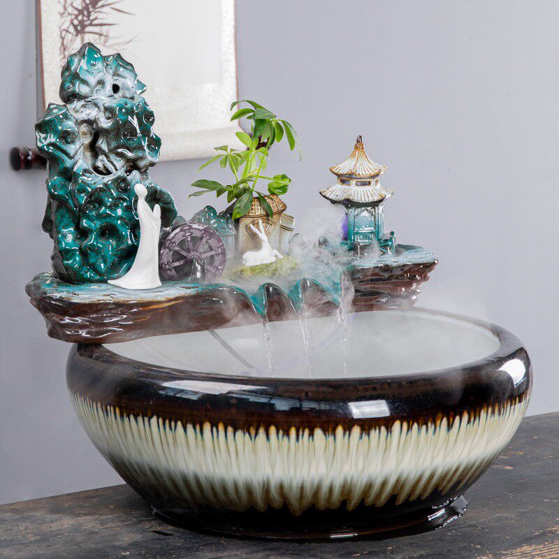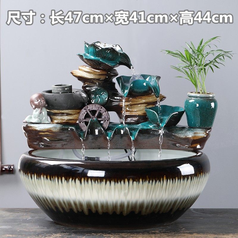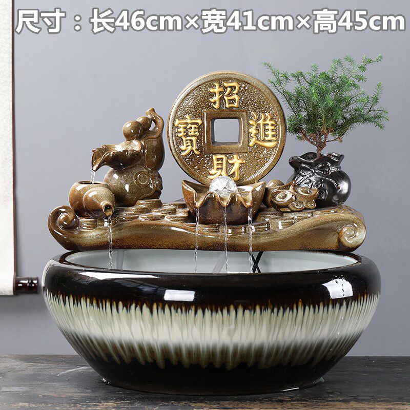 陶瓷大号水景客厅装饰办公桌面招财流水摆件养鱼缸开业乔迁送礼品
