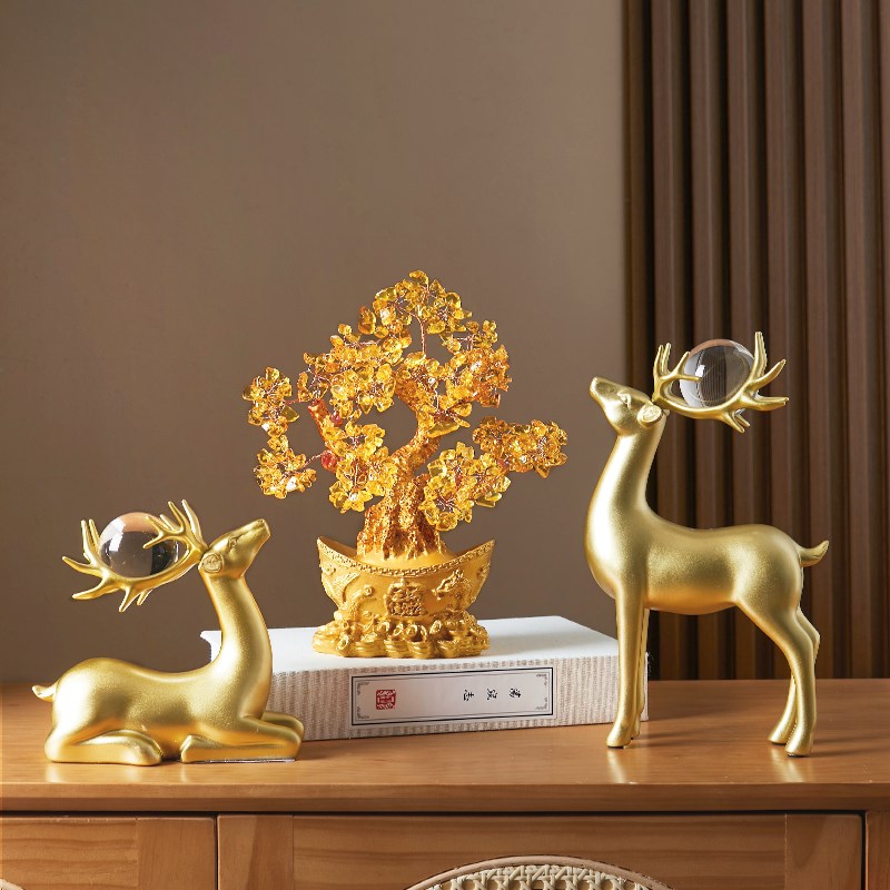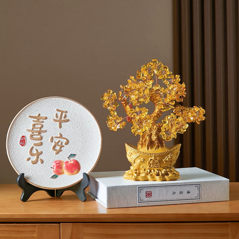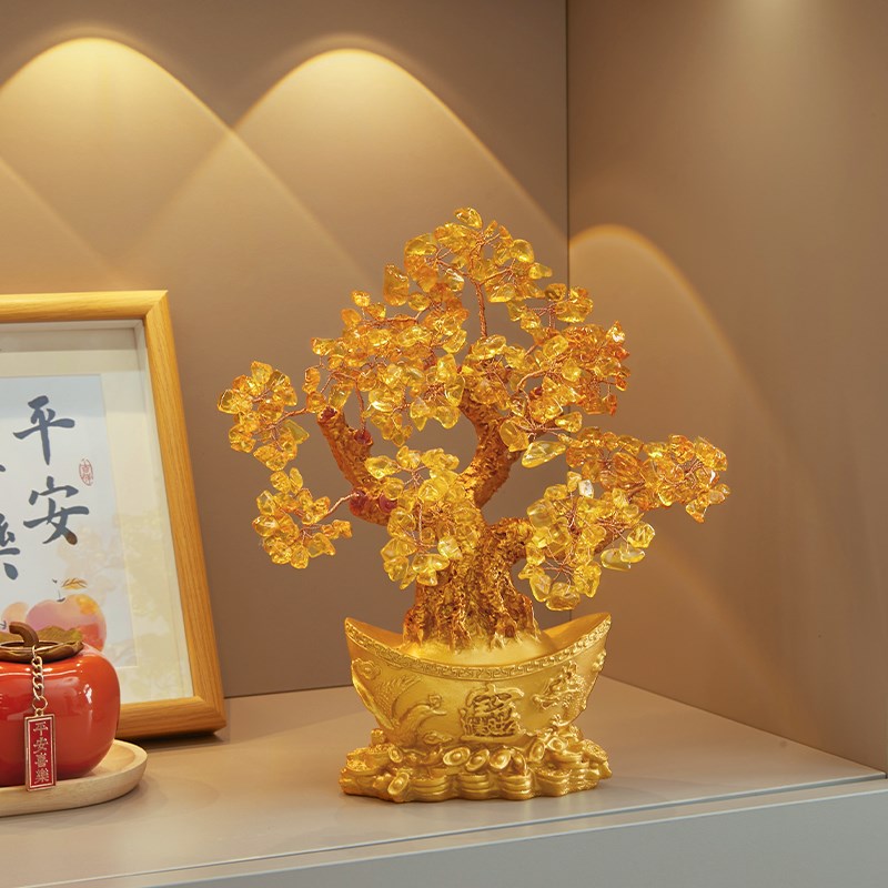 黄水晶发财树招财摆件家居电视酒柜装饰品客厅乔迁办公室开业礼物