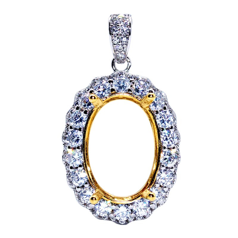 精工925纯银吊坠空托新款加工镶嵌双色坠托宝石定制18K金10*14mm