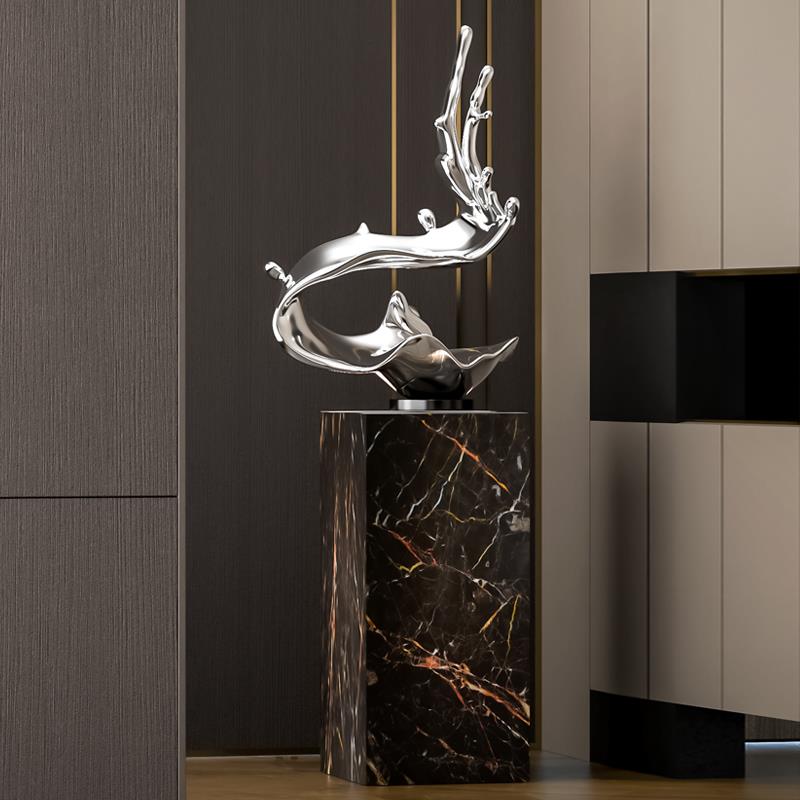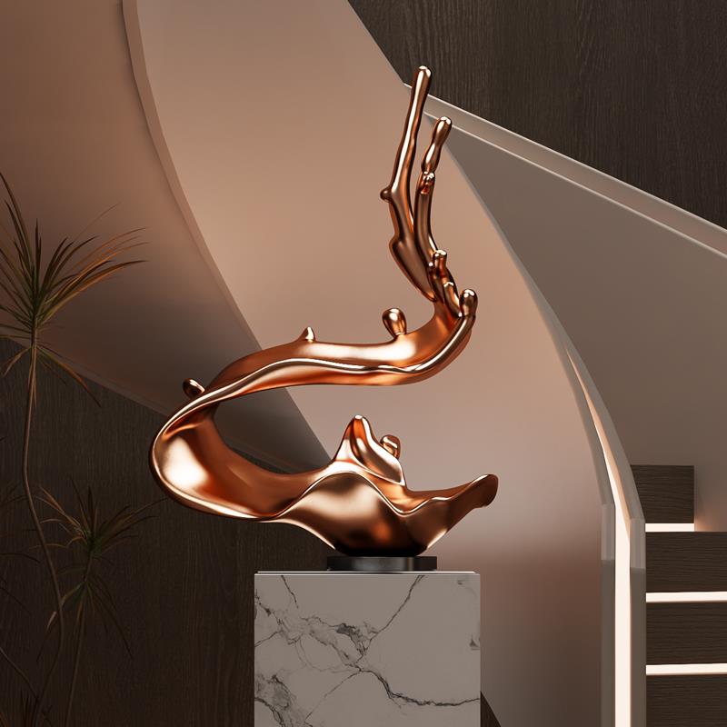 现代玻璃钢雕塑酒店大堂摆件抽象艺术高级感楼梯下大型落地装饰品