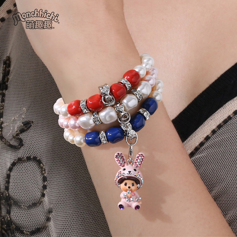 Monchhichi萌趣趣吊坠日韩甜美饰品本命年红色手链女新年礼物B082