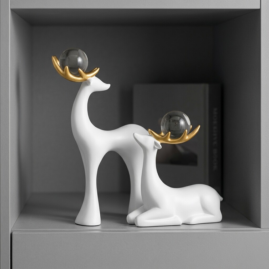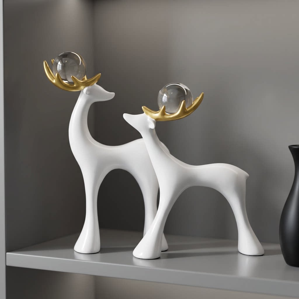 简约白色鹿摆件一对客厅玄关装饰品桌面电视柜摆设