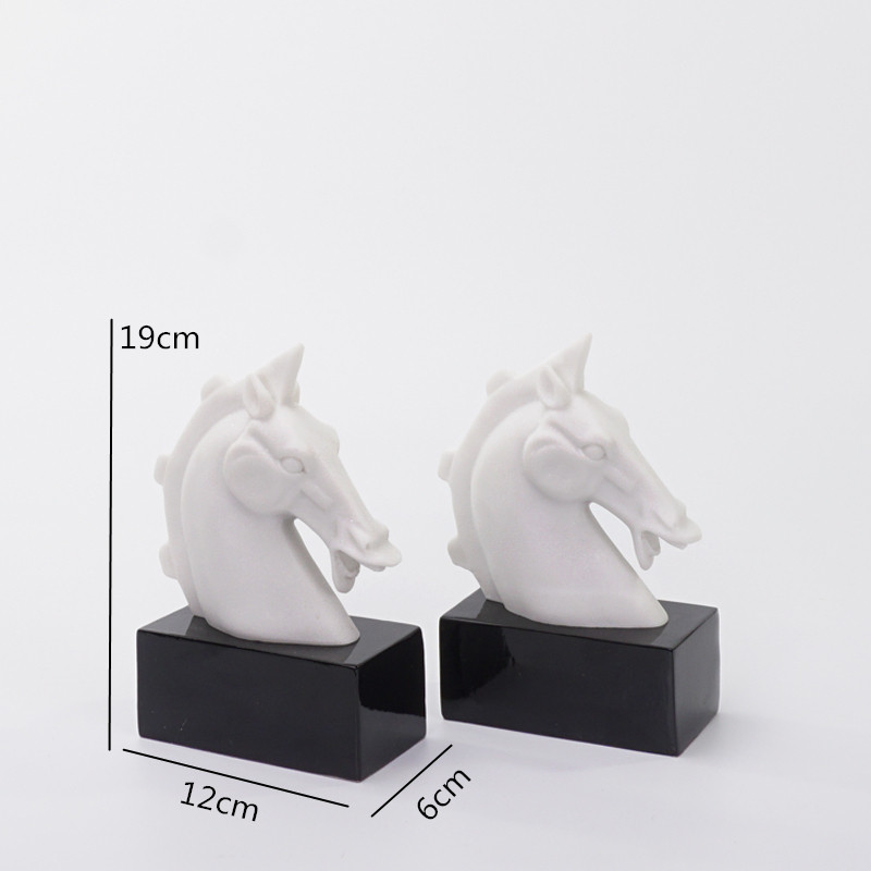 现代新中式创意白色马头书档书靠办公室书房书柜客厅酒柜装饰摆件