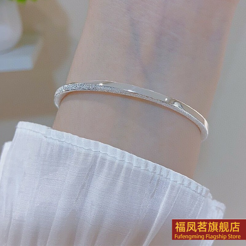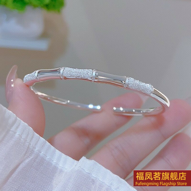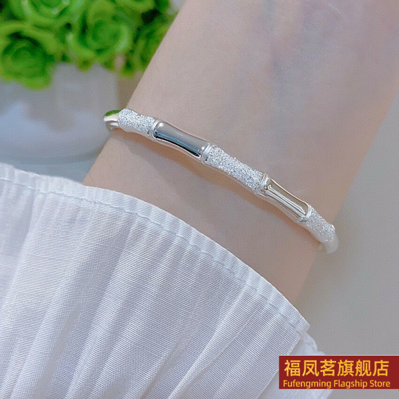 正生足银9999莫比乌斯扭纹磨砂竹节纯银手镯女开口实心网红手环