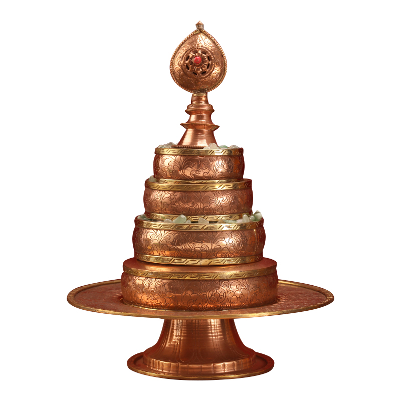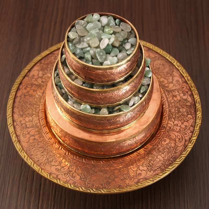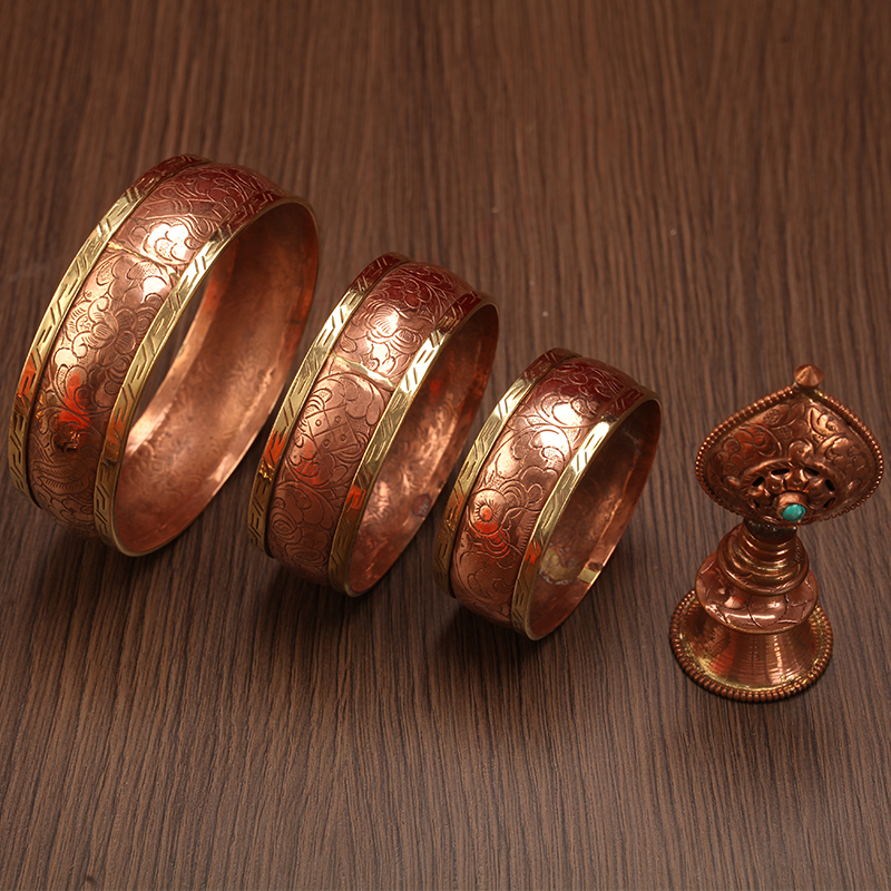 藏族尼泊尔紫红铜曼扎盘格桑花手工供奉八吉祥修盘曼茶罗摆件家用