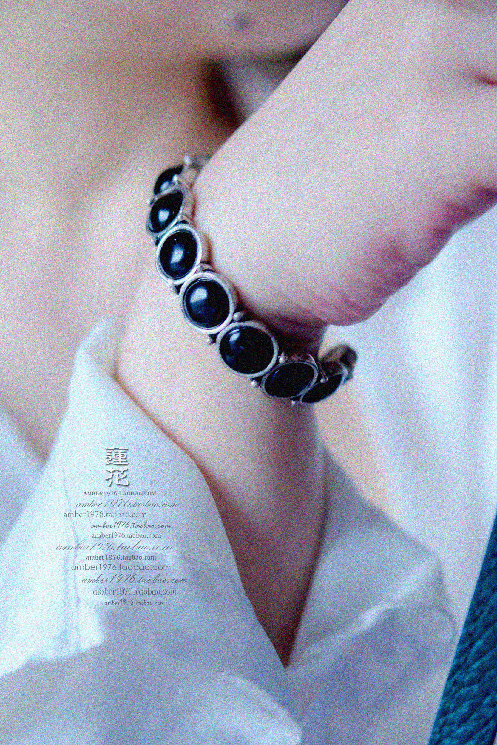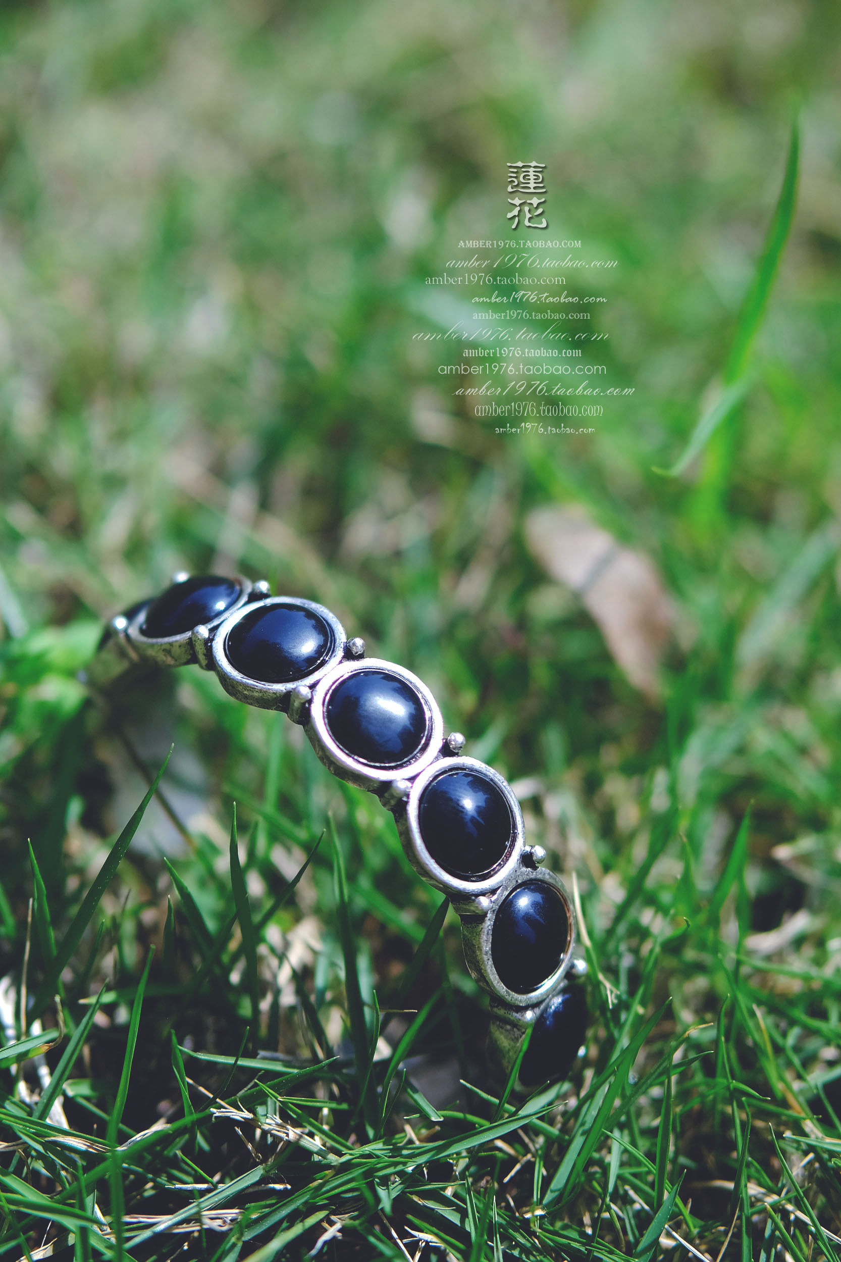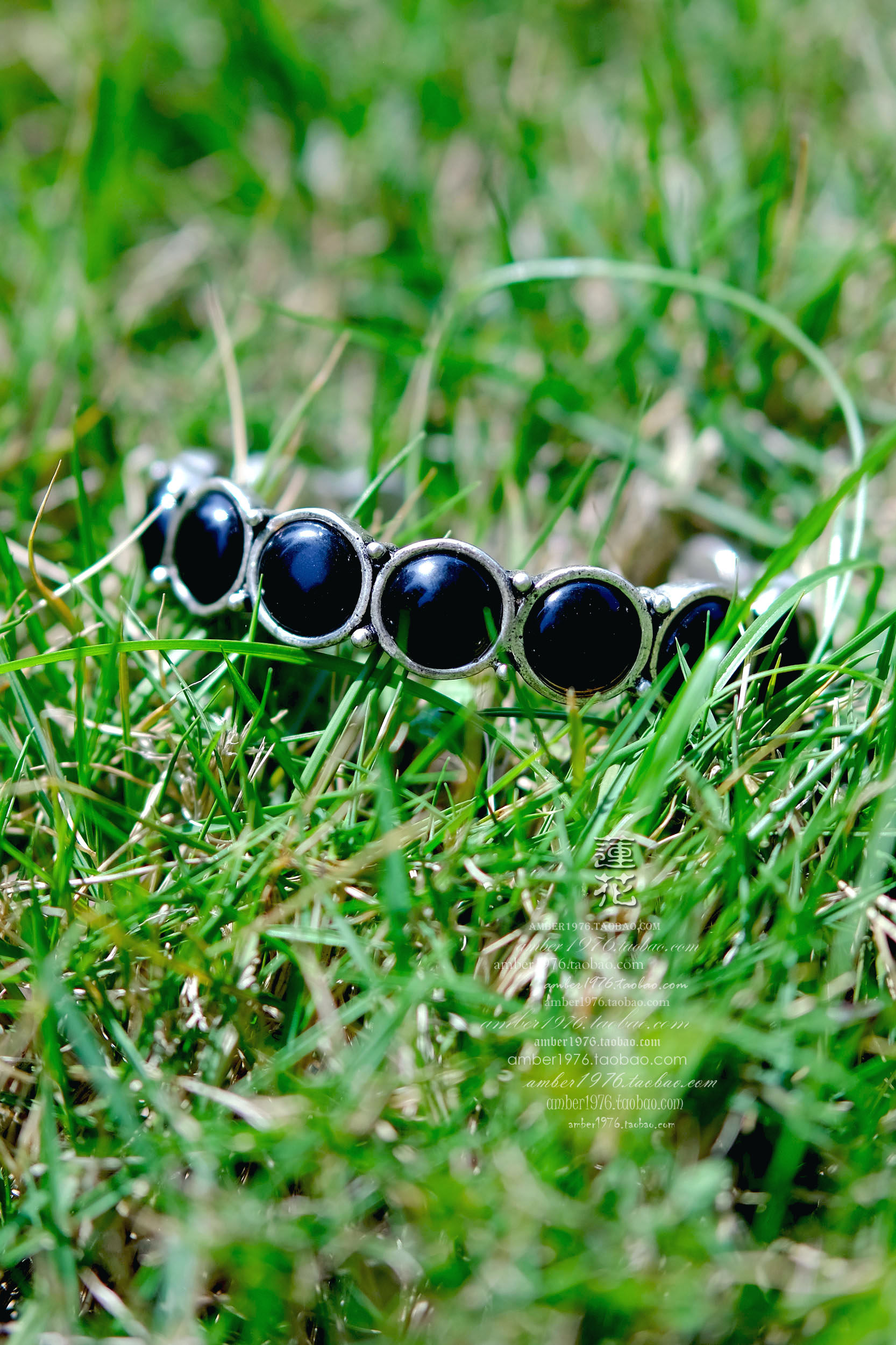 No.369 Lucky Brand 合金镀纯银黝黑宝石镶嵌复古气质开口手镯