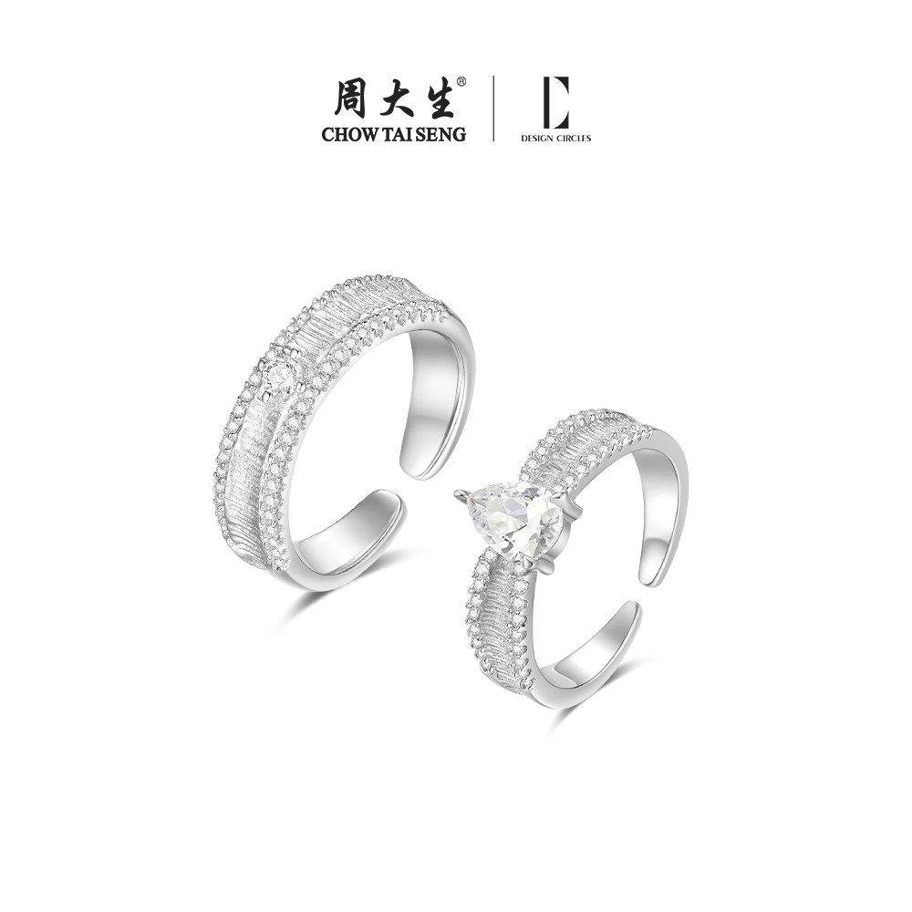 周大生*DC璀璨之恋情侣对戒纯银S925开口戒食指戒生日礼物送女友