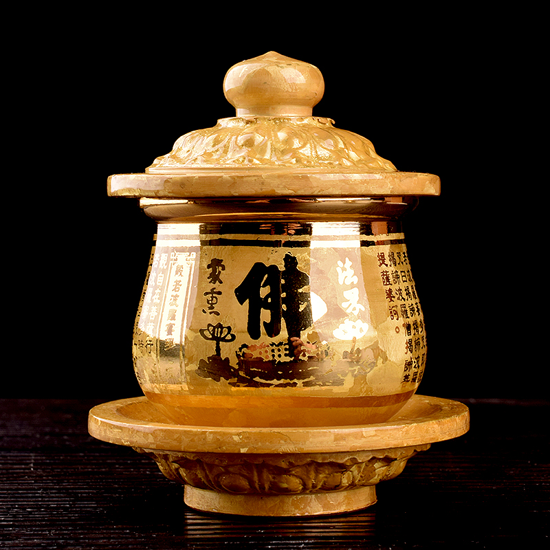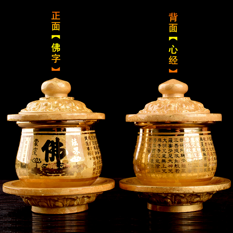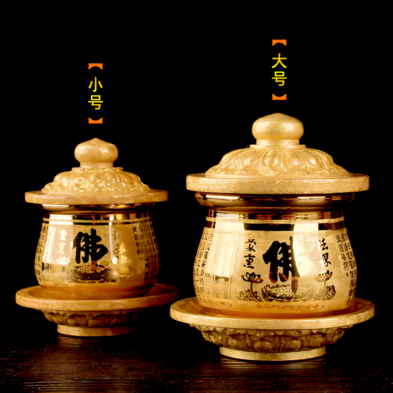 速发黄铜结晶圣水杯供佛经水杯佛前佛字组合铜水杯茶摆件黄铜