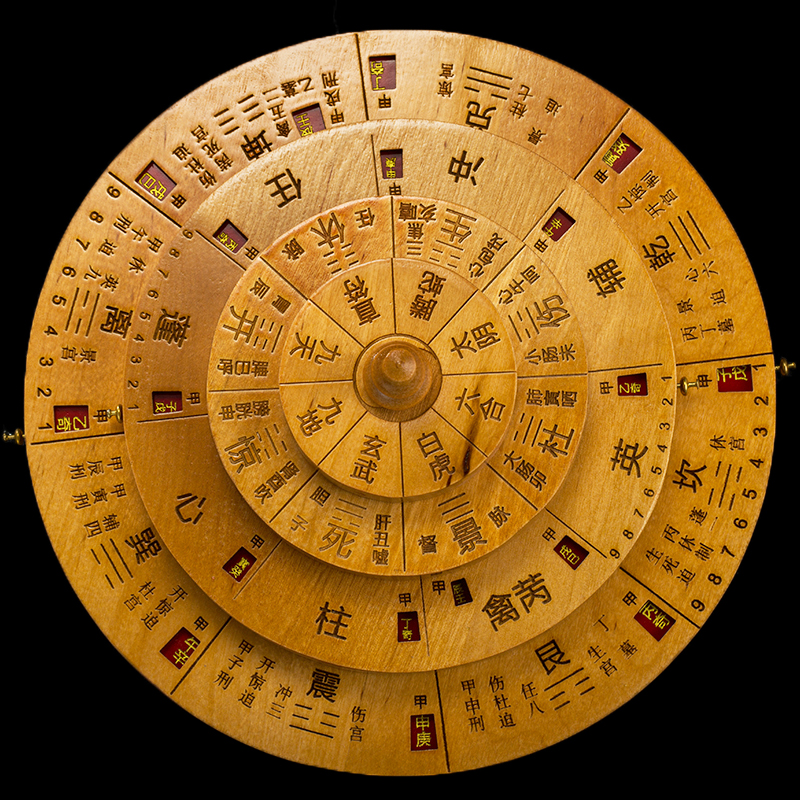 奇门罗盘遁甲罗经专业高精度多功能桃木雕刻多用活转盘指南针摆件
