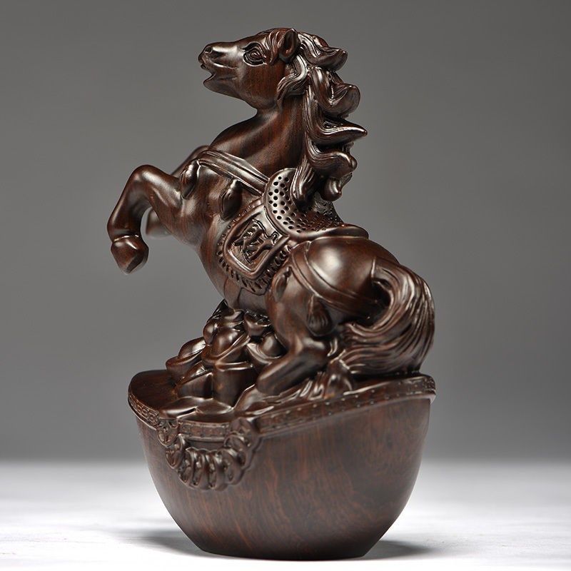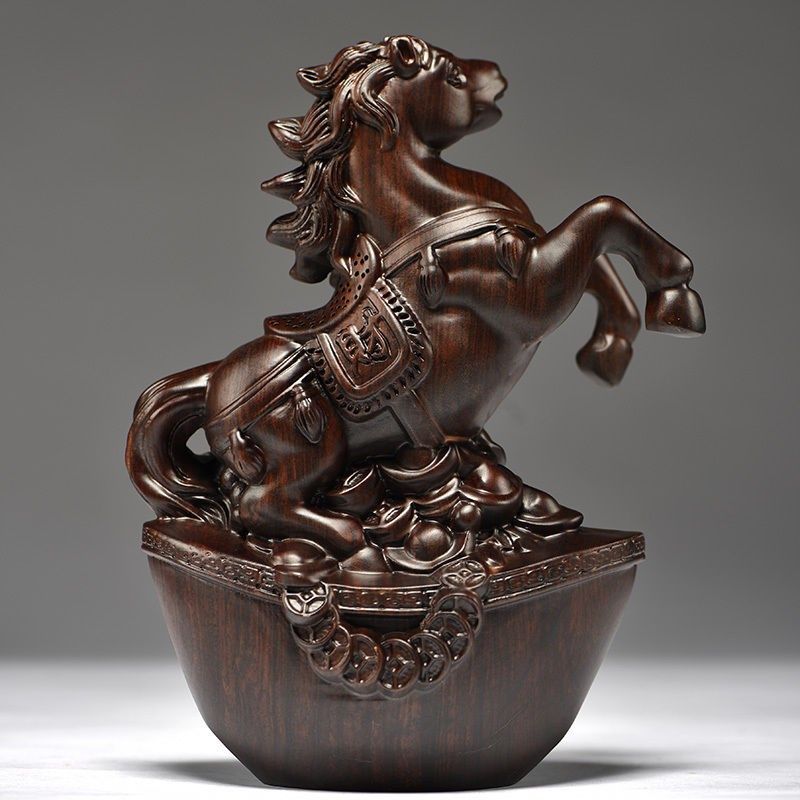 实木马摆件中式黑檀木雕马到成功办公室桌装饰家居送礼红木工艺品