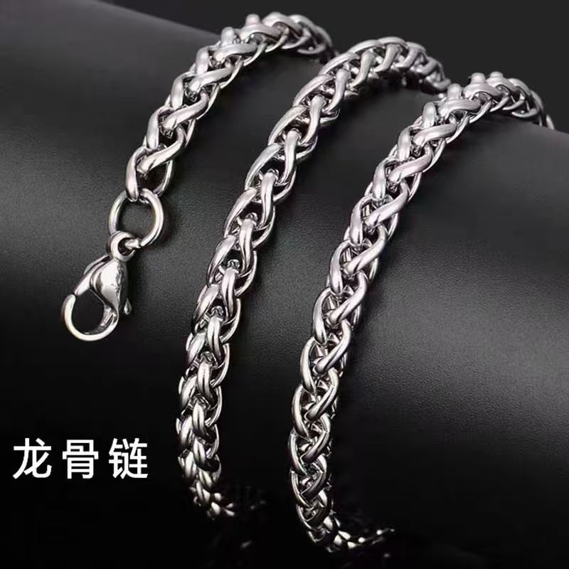 男士钛钢项链diy链条配件欧美简约龙骨链女吊坠配链 3-6mm花篮链