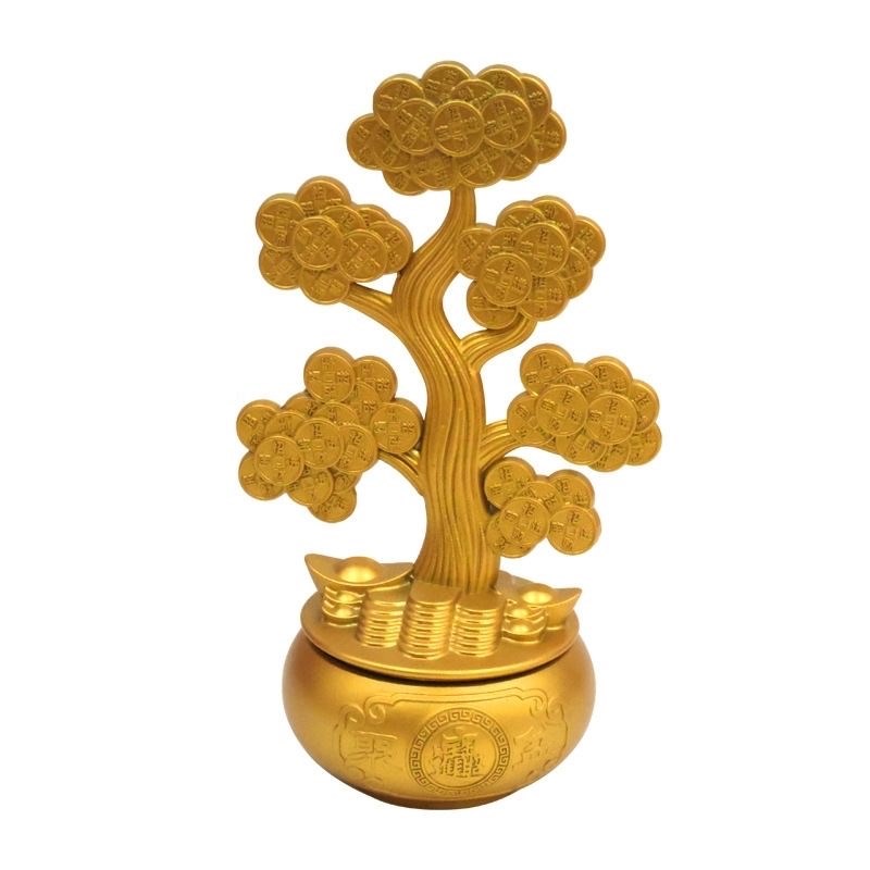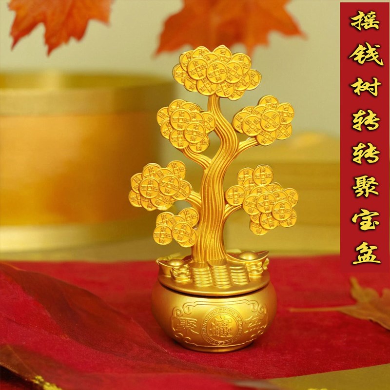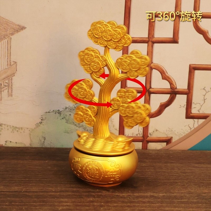 新款创意招财可旋转摇钱树聚宝盆装D饰品摆件乔迁店铺前台开业送